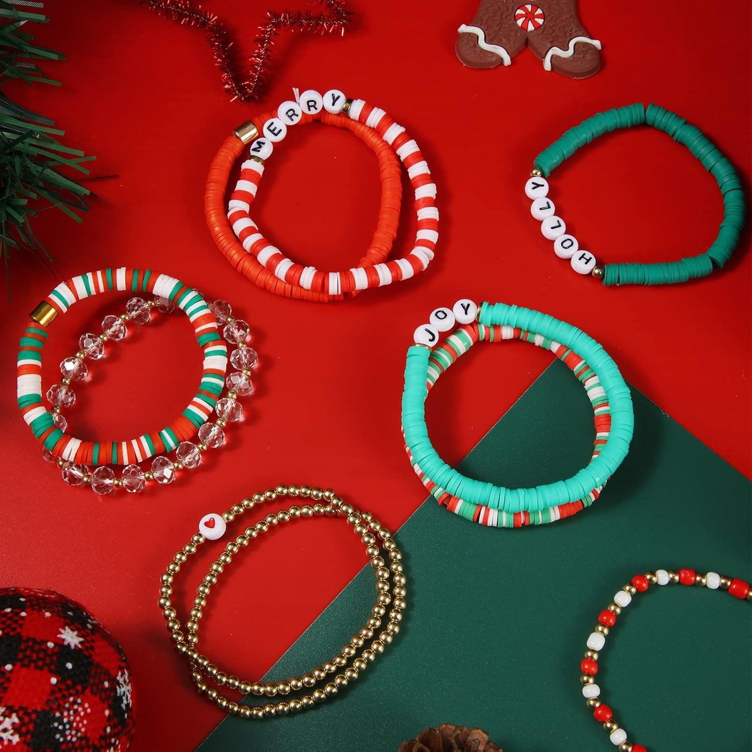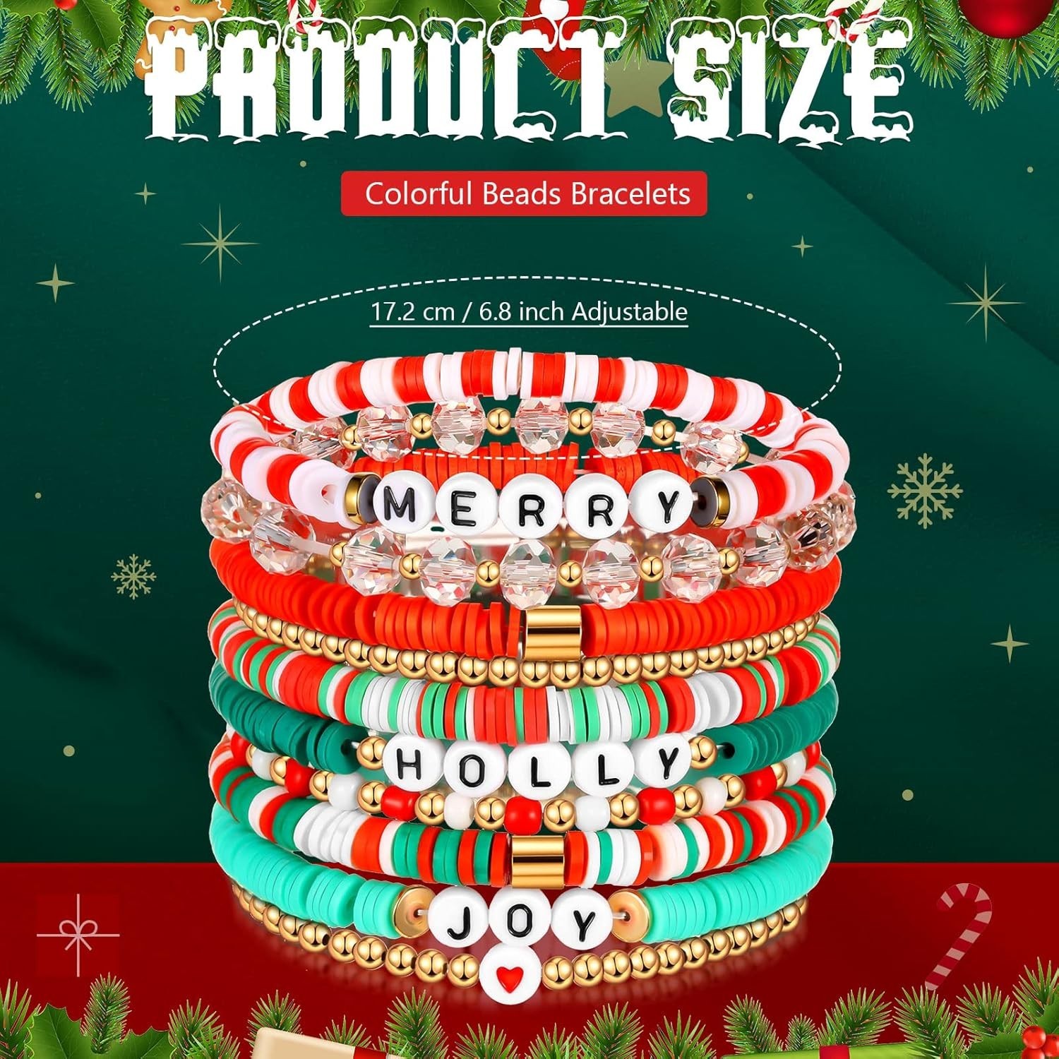 Leitee 10 Pcs Christmas Bracelets Gifts for Women Heishi Surfer Bracelets Polyme