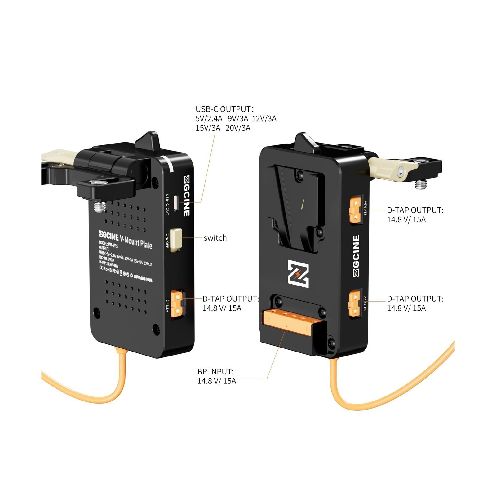 ZGCINE VM-VP5 Quick Release V-Mount Battery Plate BPU USB-C D-TAP Sony Cameras