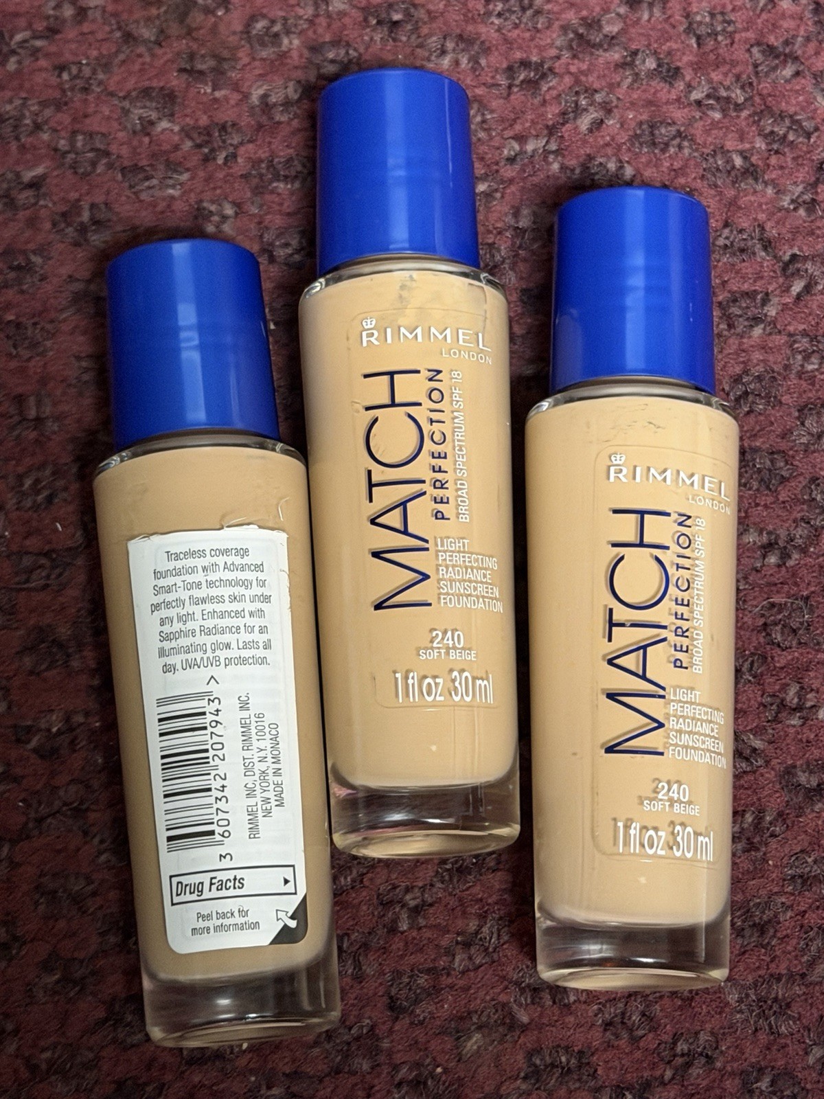3x Rimmel Match Perfection Foundation 1 oz each 240 Soft Beige