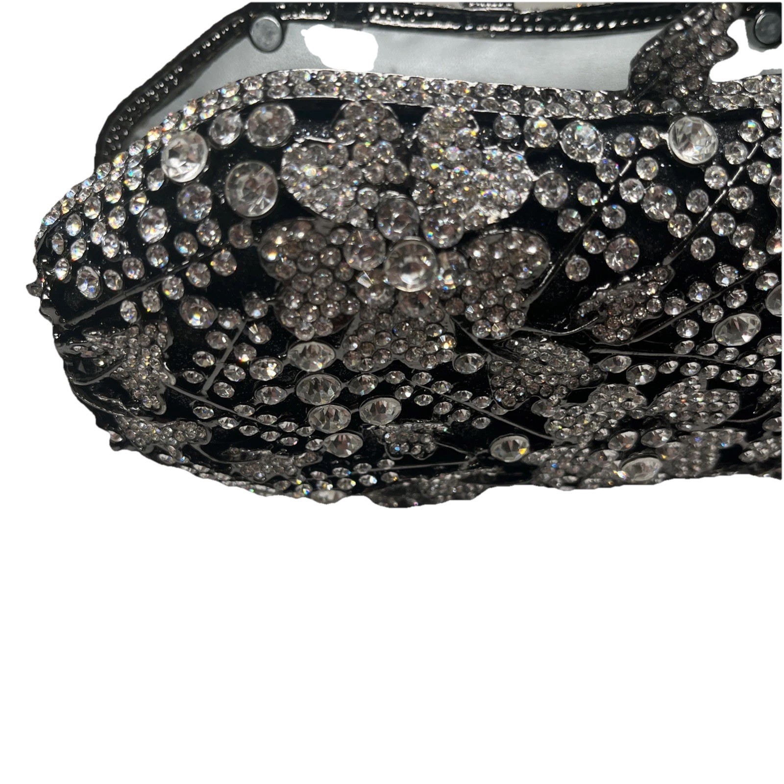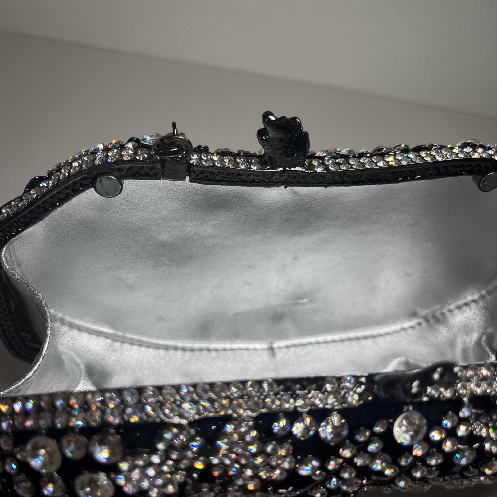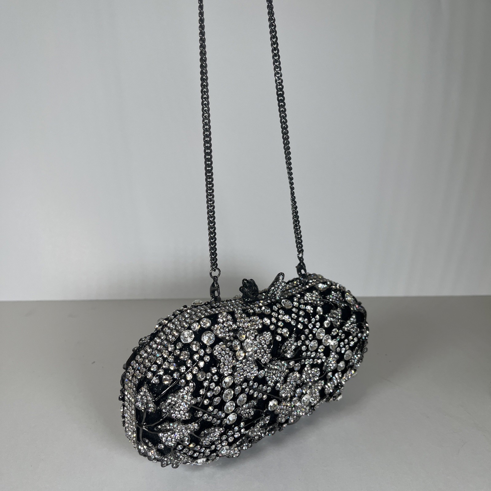 Vintage Black Velvet Embellished Oval Evening Clutch Purse