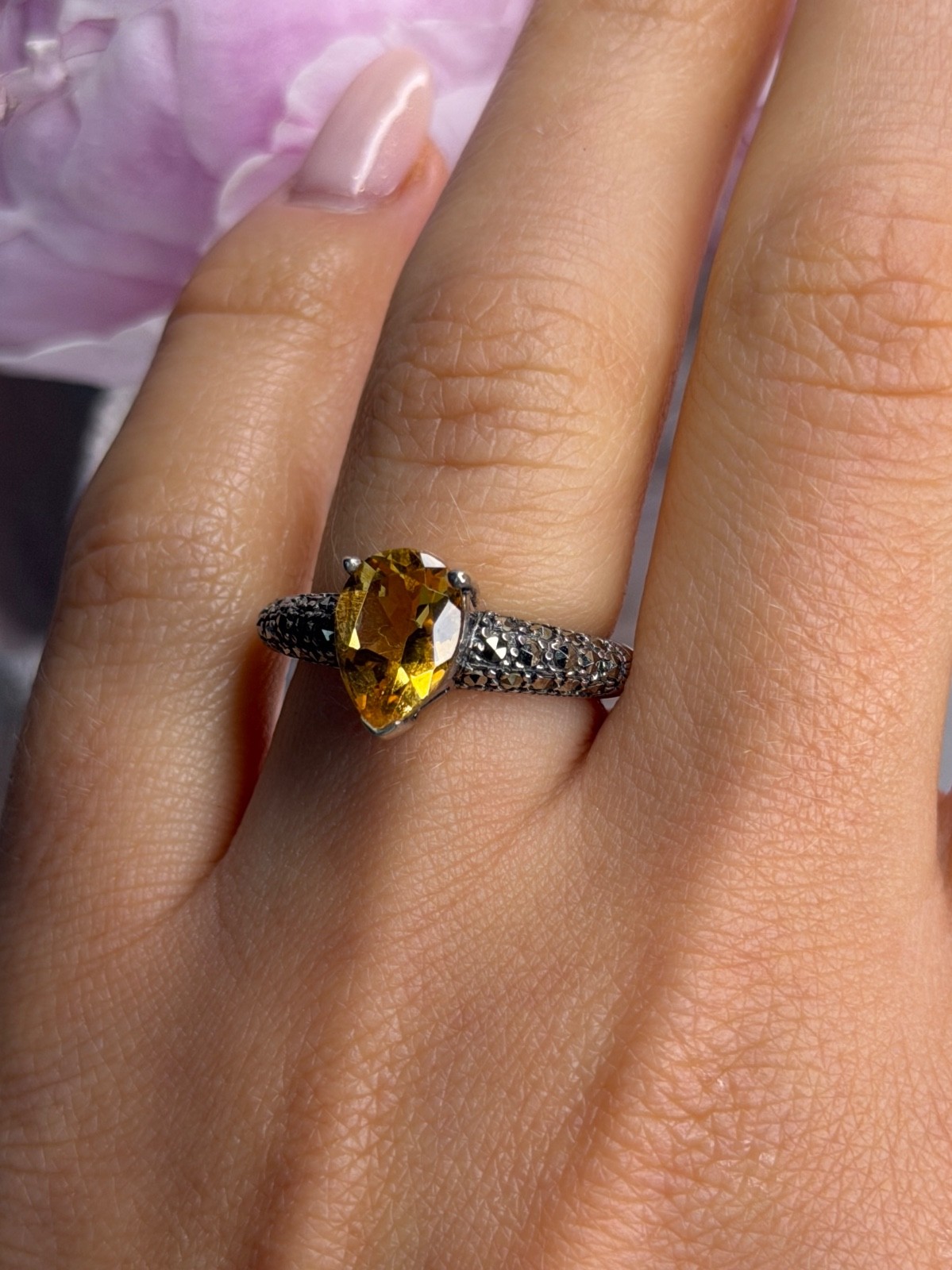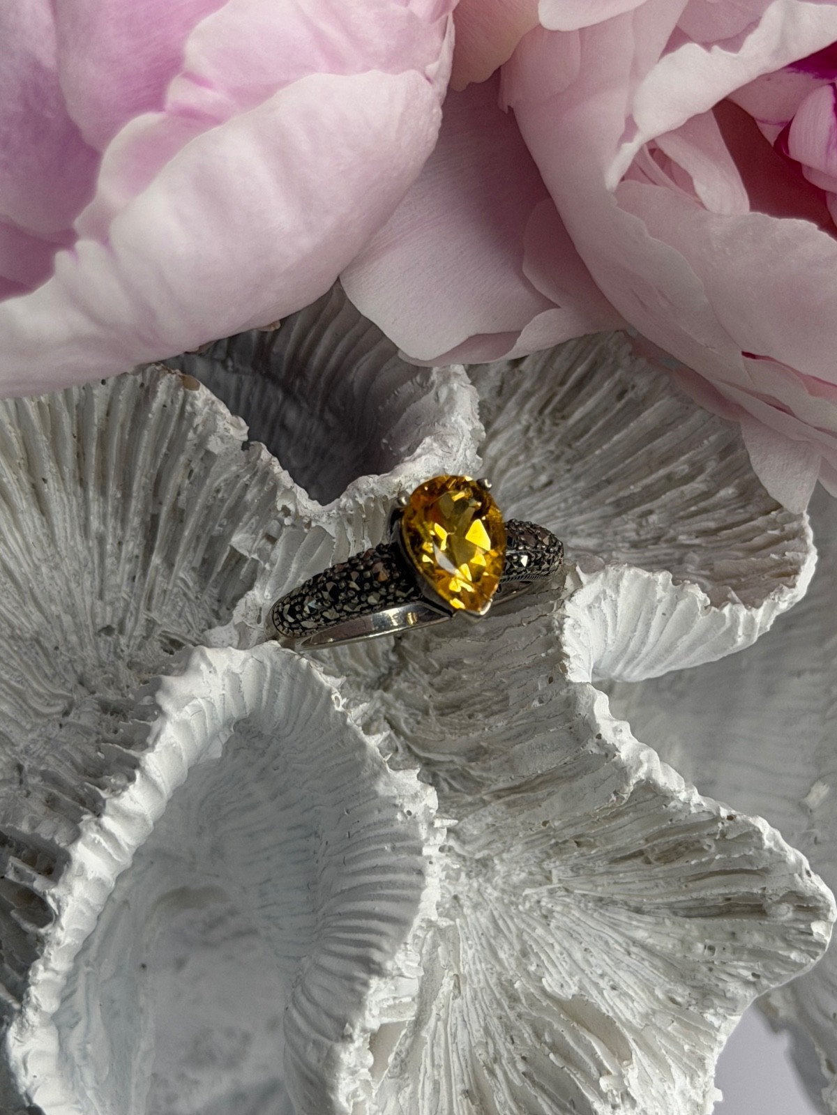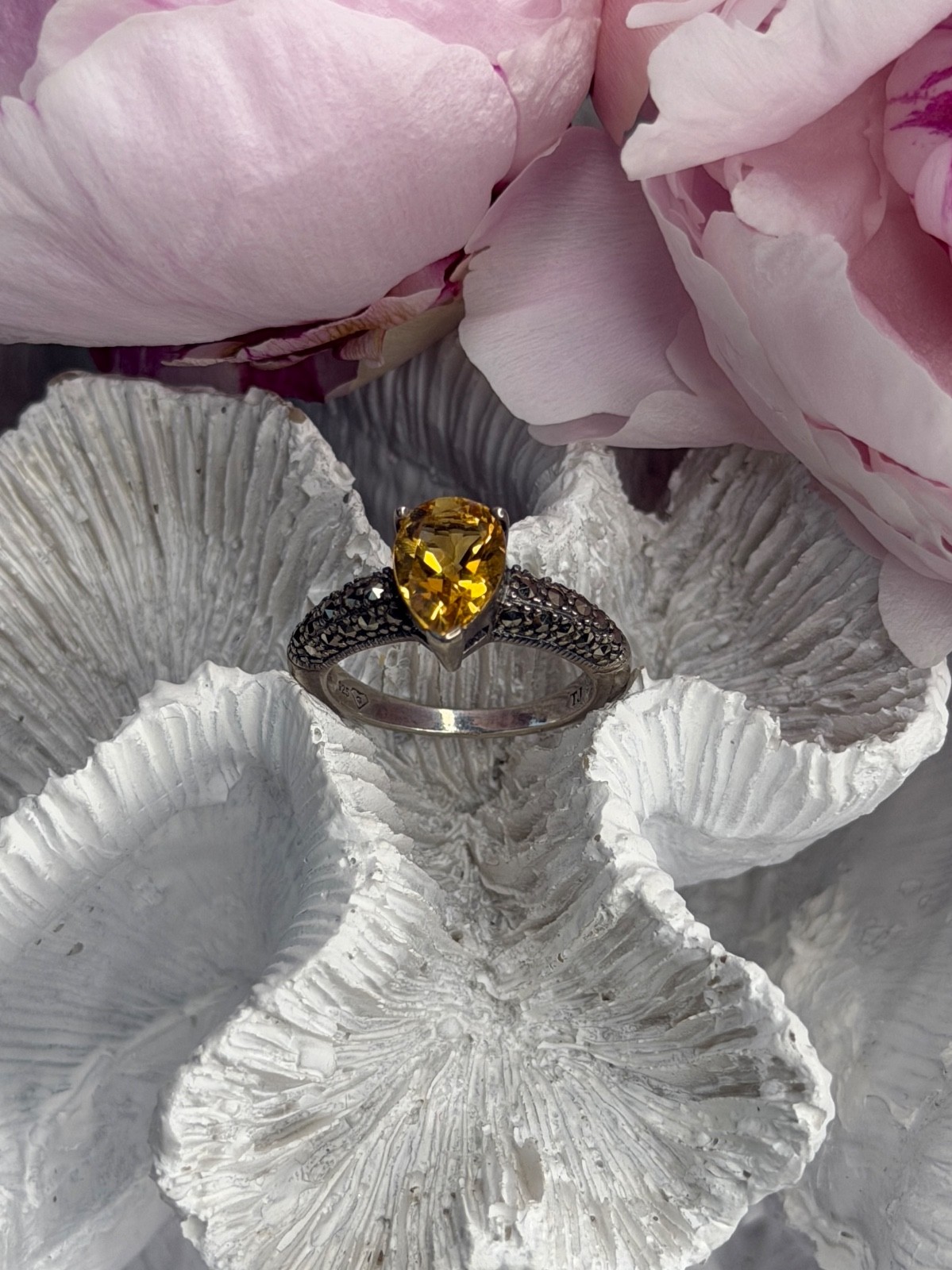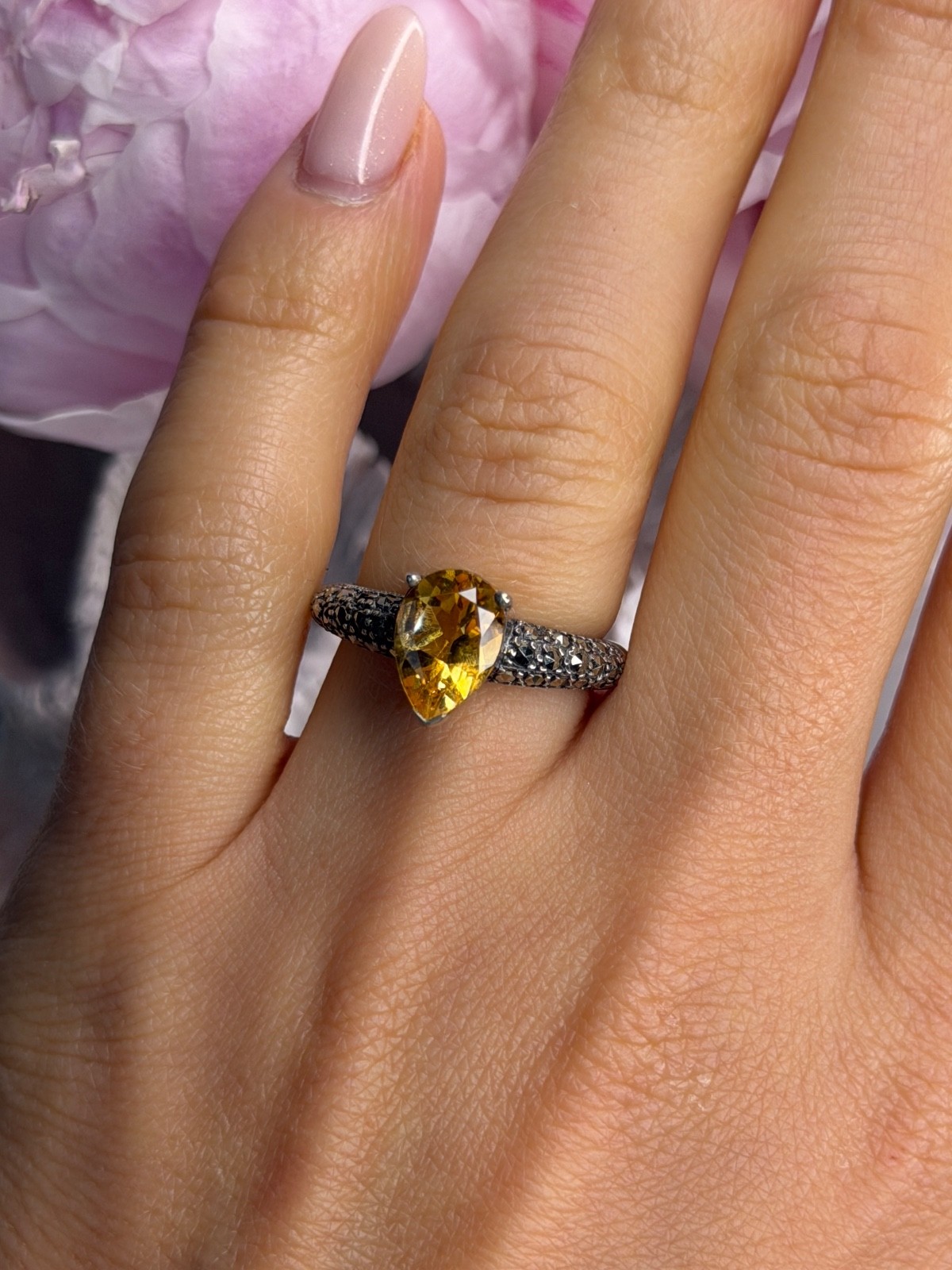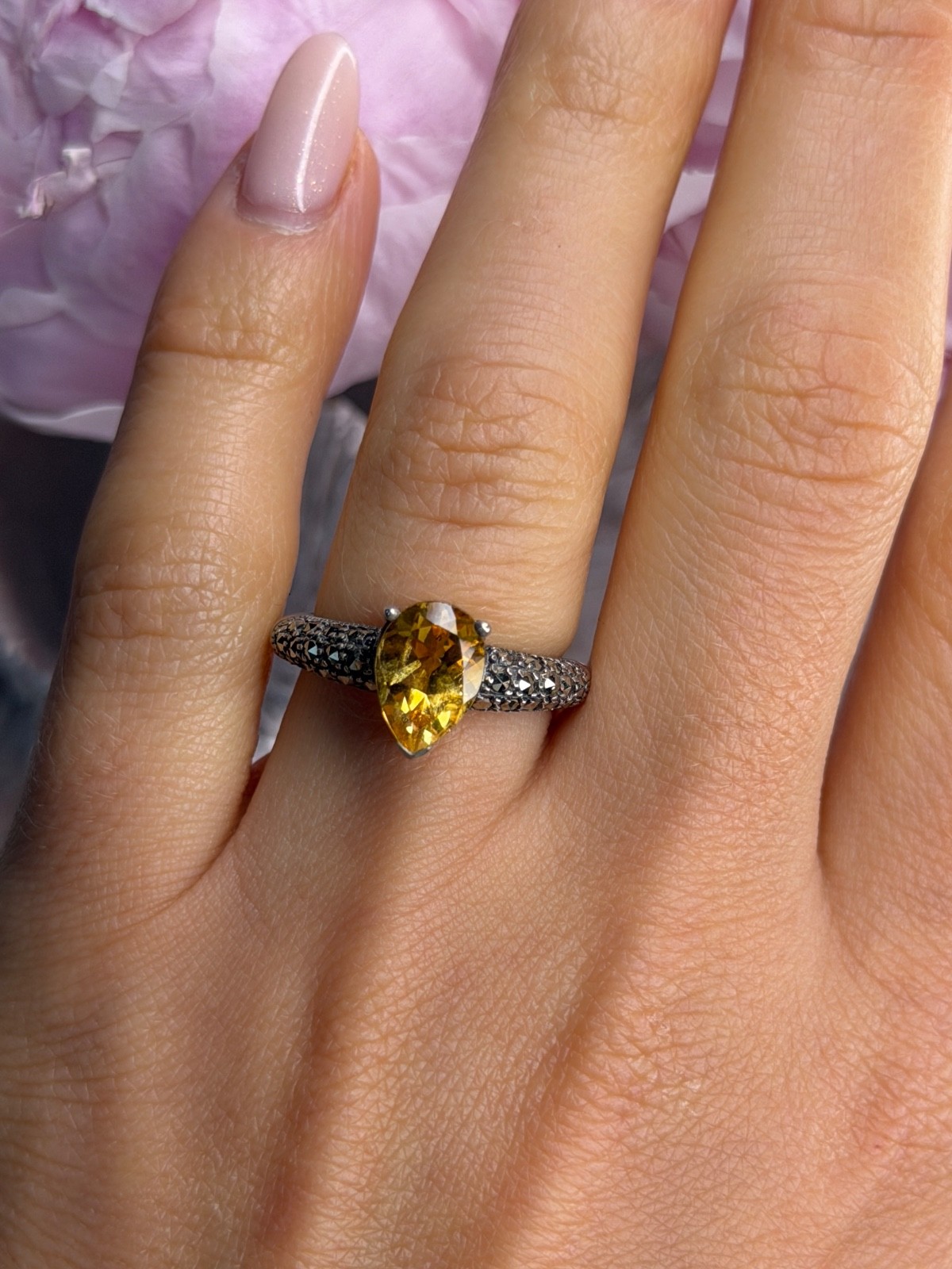 как выглядит 925 Sterling Silver Citrine Marcasite Ring Size 7 фото