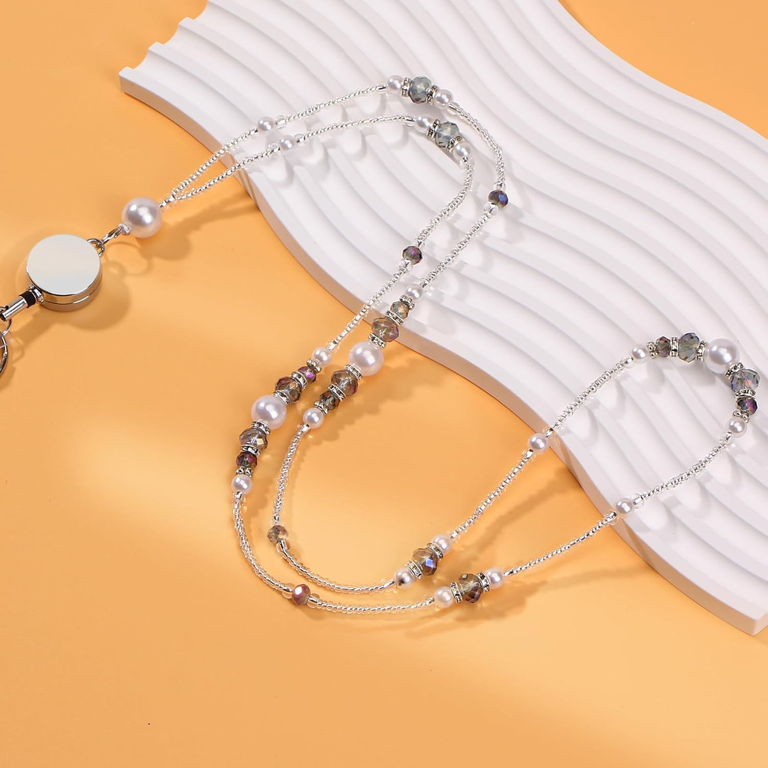 Lanyards for ID Badges and Keys, Retractable Badge Lanyard for Women, Beaded Tea