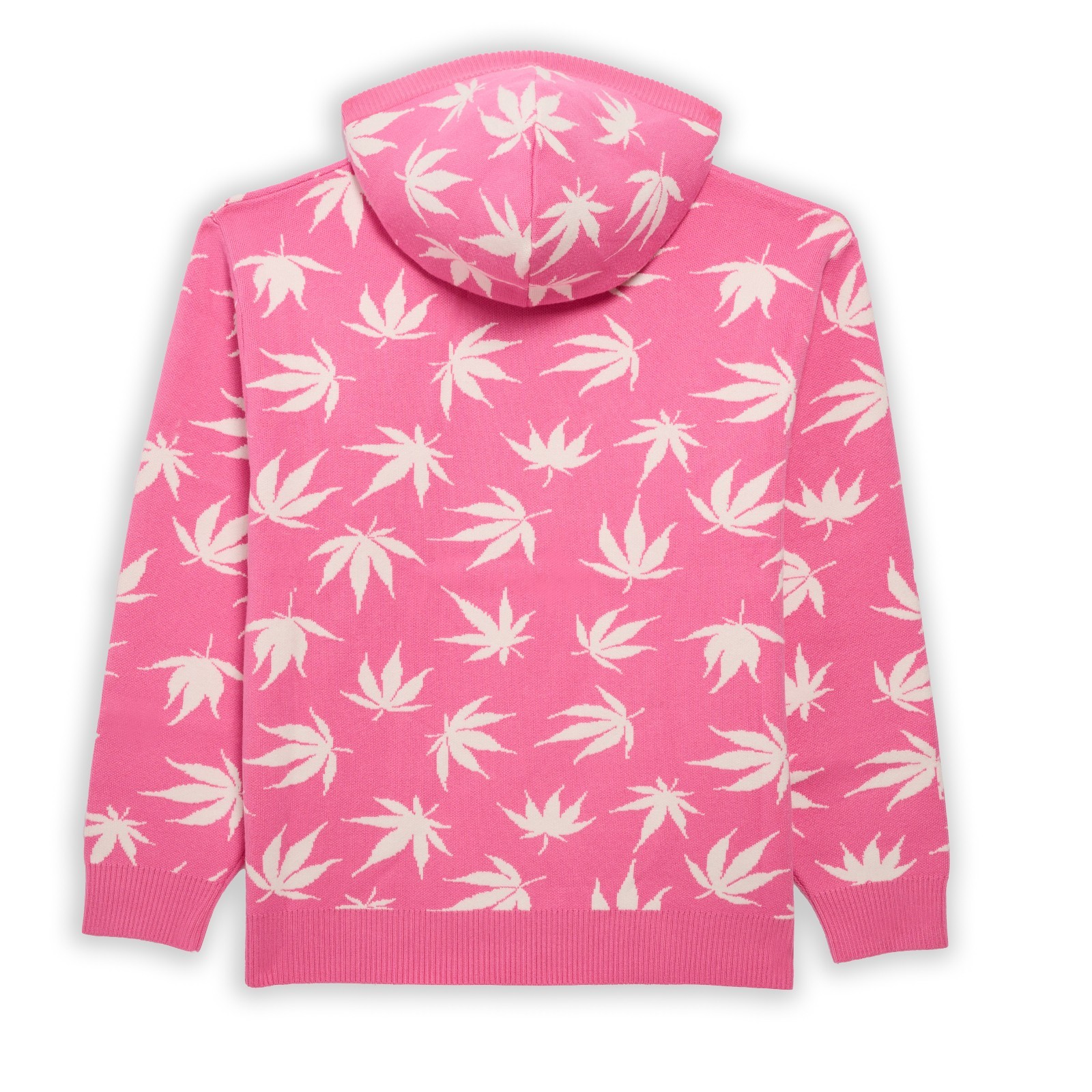 SALE Heavy Soft Knit Viscose Hoodie With Cannabis Leaf Design Pink White