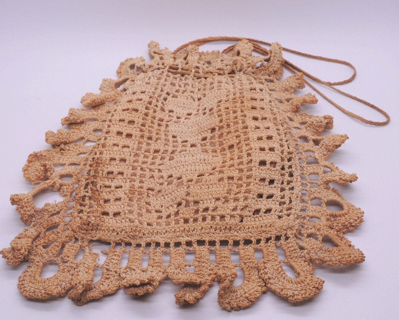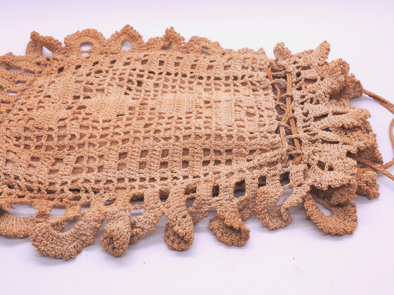 Antique Vintage Crochet Knit Purse Lined Handbag Drawstring Bag 1940s Victorian