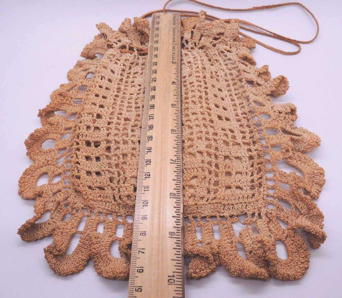 как выглядит Antique Vintage Crochet Knit Purse Lined Handbag Drawstring Bag 1940s Victorian фото