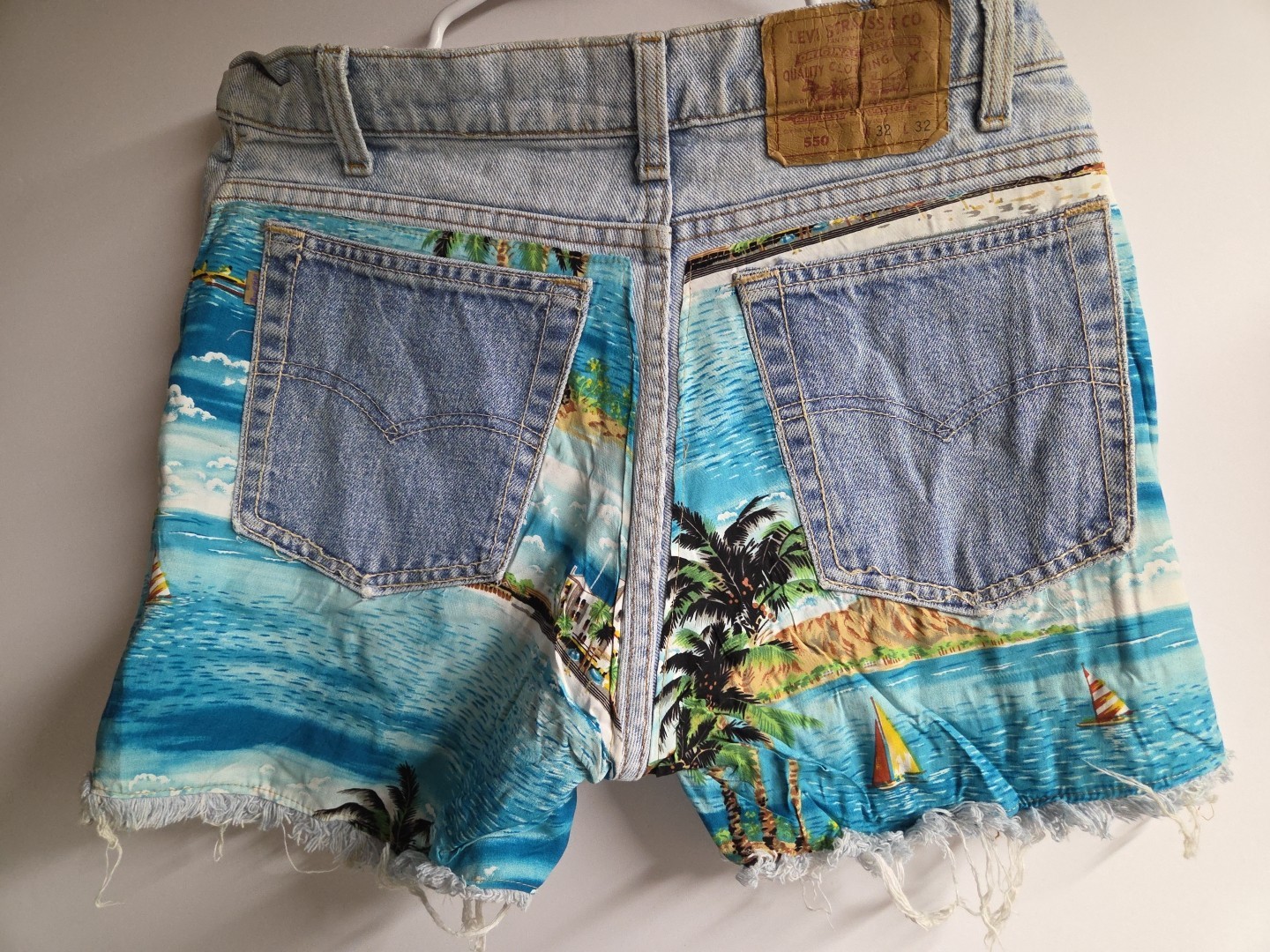 как выглядит Vintage 1 Of A Kind Levis Homemade Hawaiian Cut-Off Denim Shorts 32" Waist фото