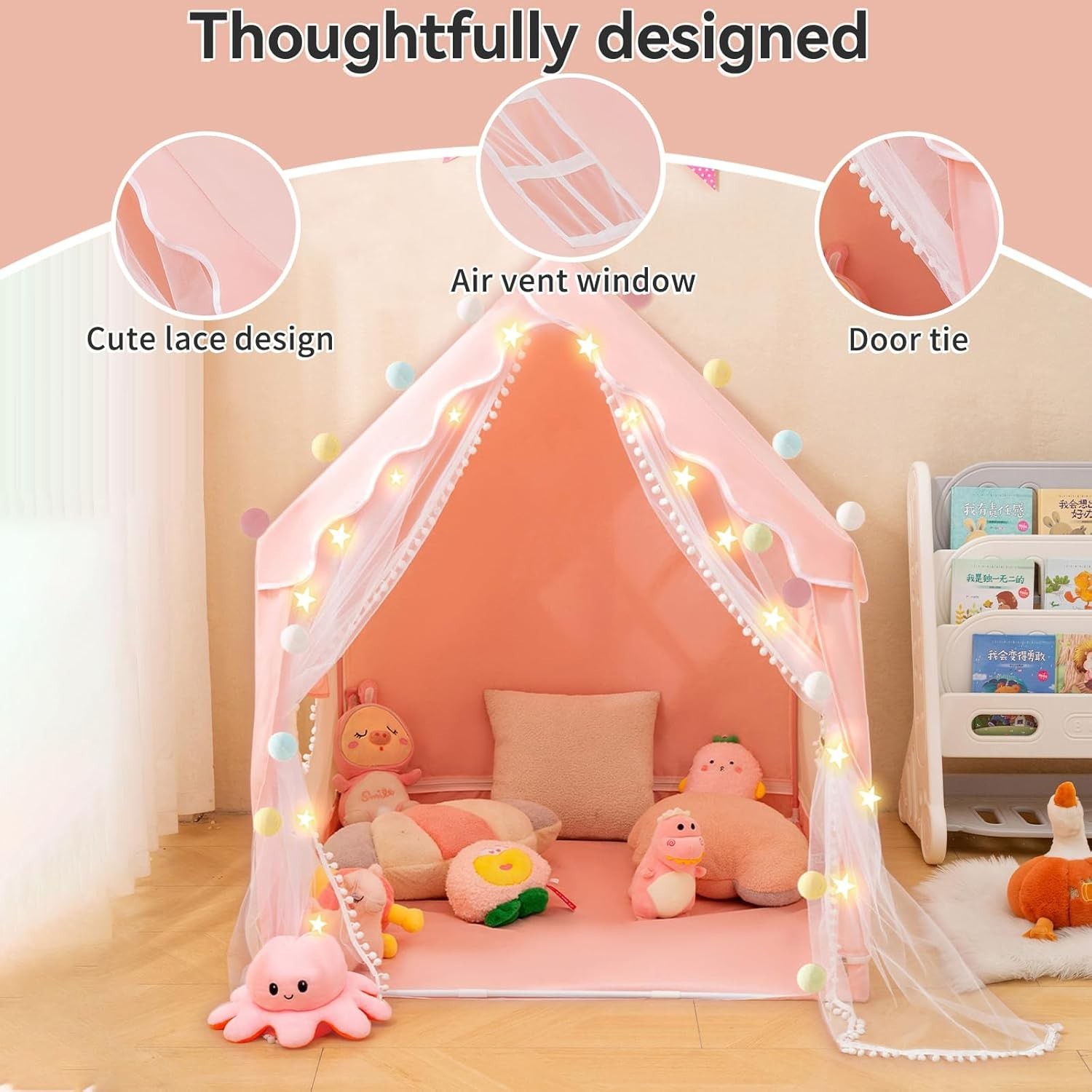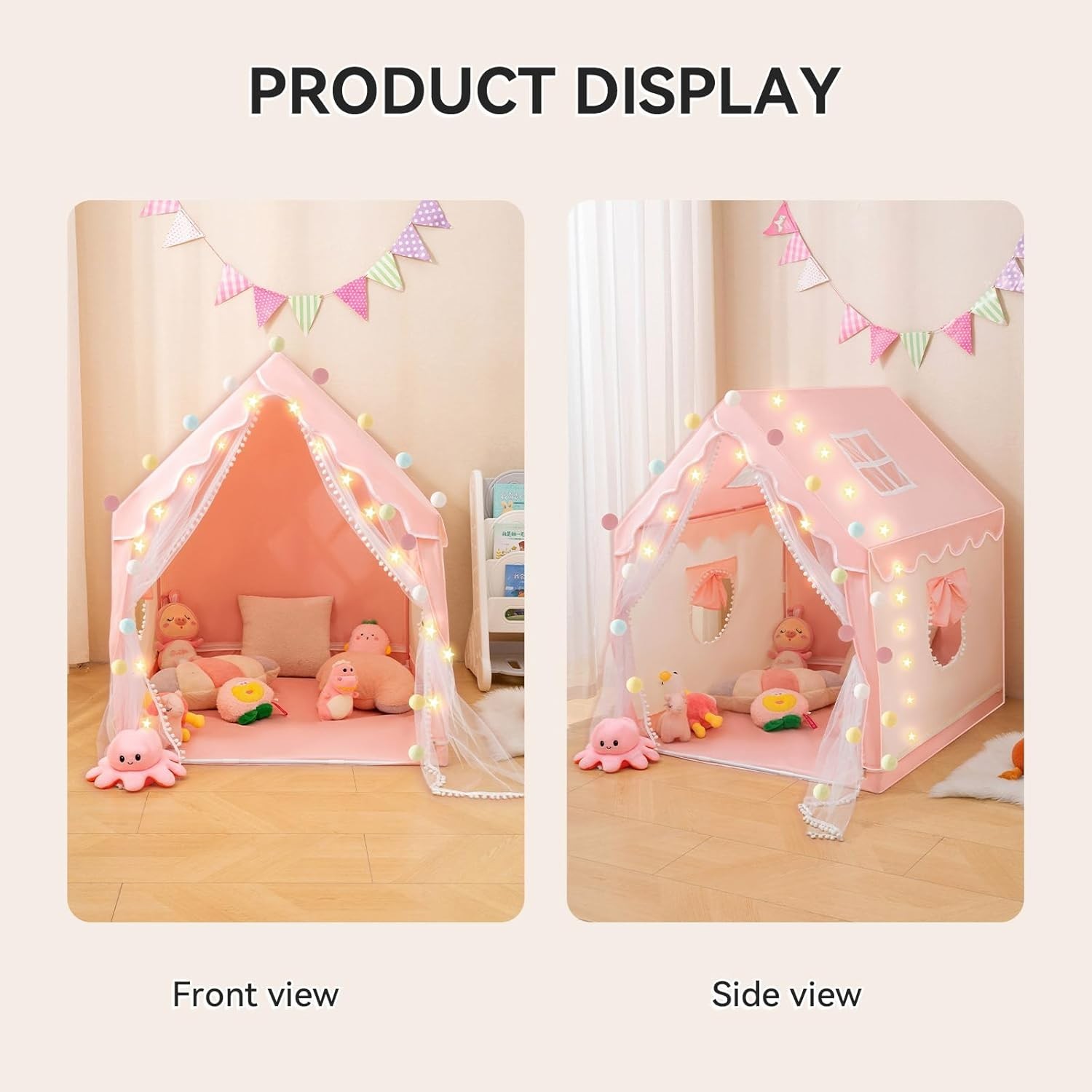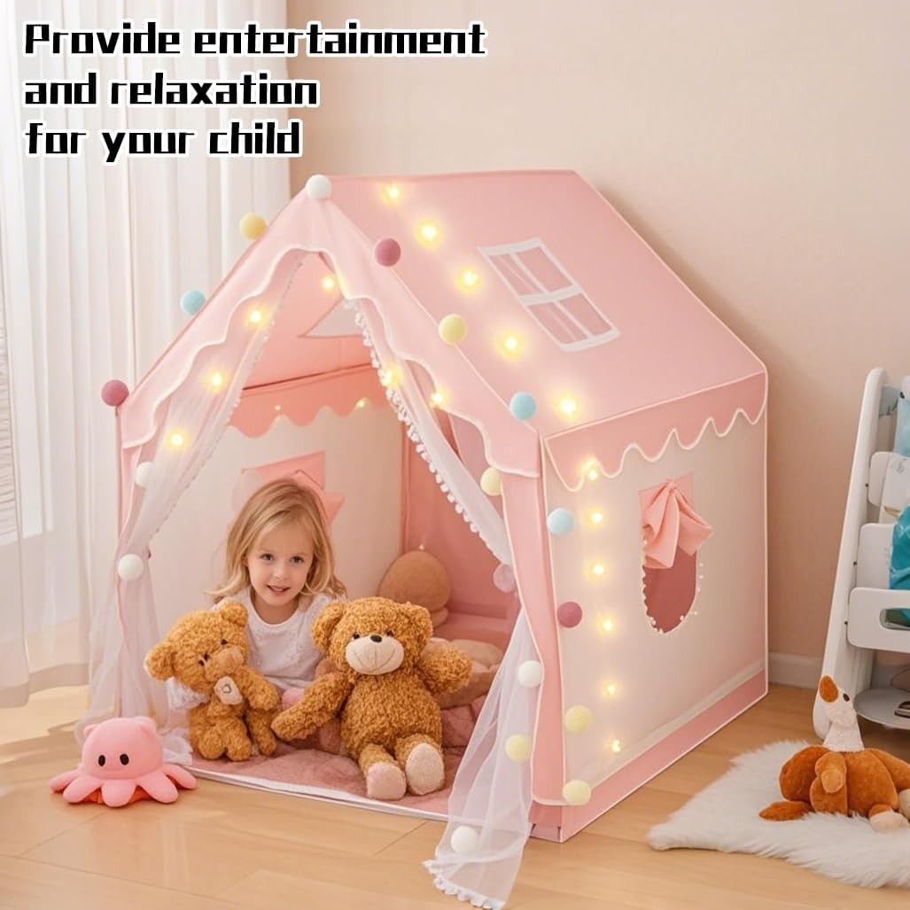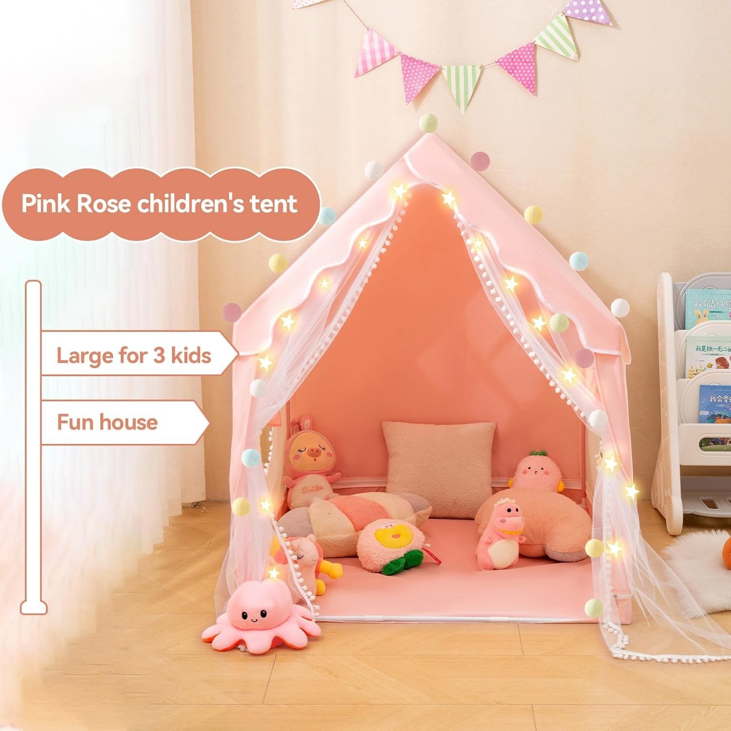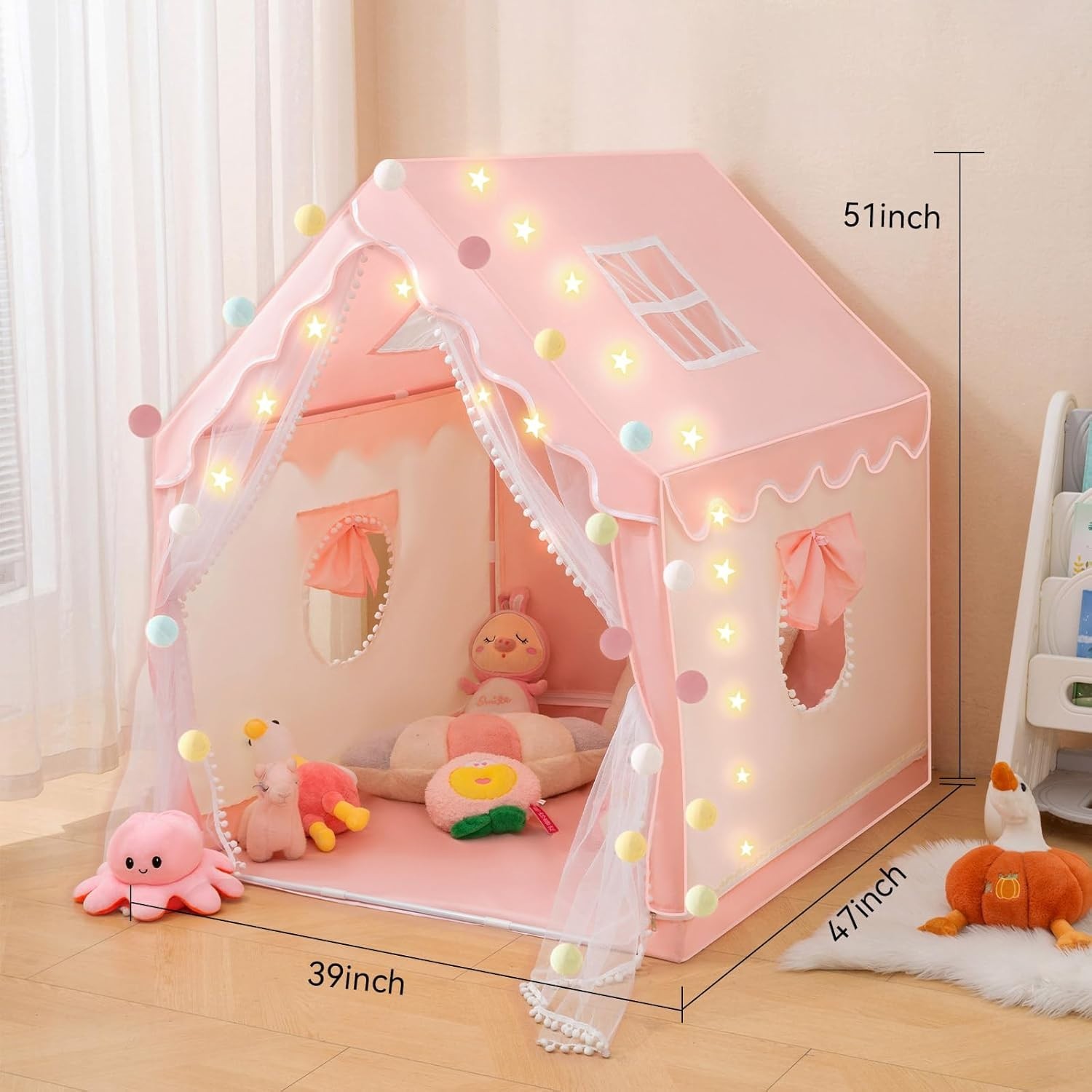 Tienda infantil con tapete y luces, casa de juegos rosa para ni as.