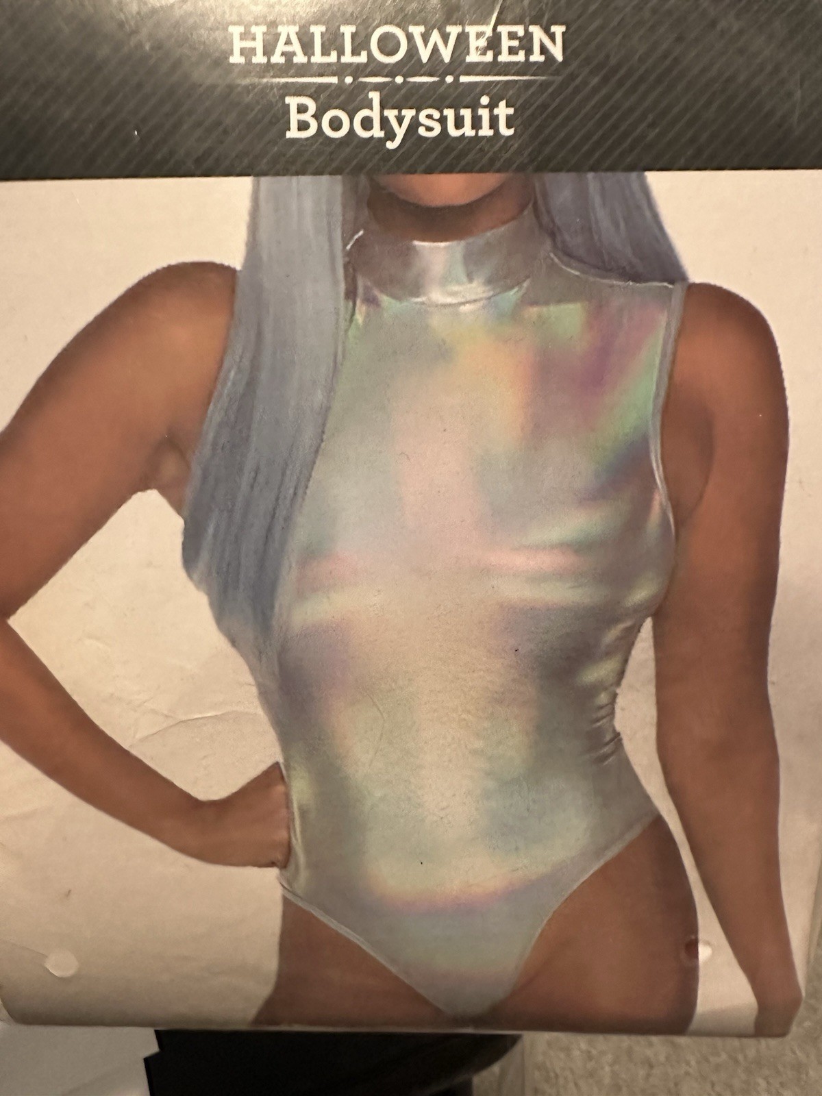 Halloween Costume Woman Silver Bodysuit Size Large XL New Adult