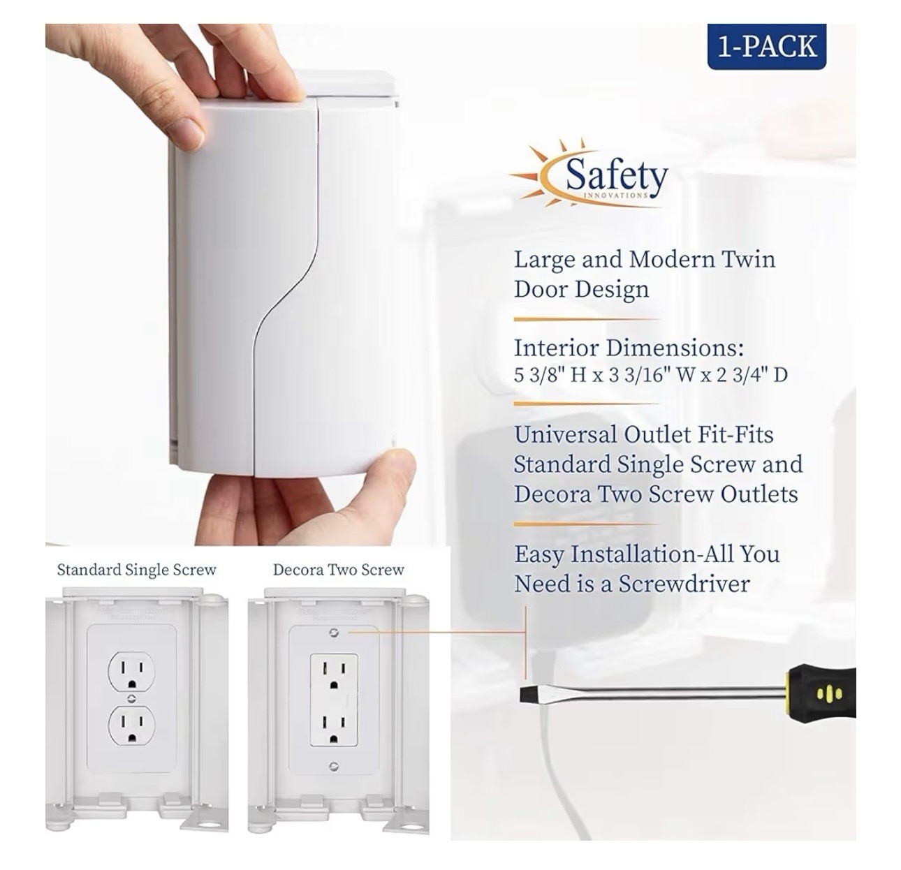 Safety Innovations Twin Door Baby Safety Outlet Cover Box for Babyproofing
