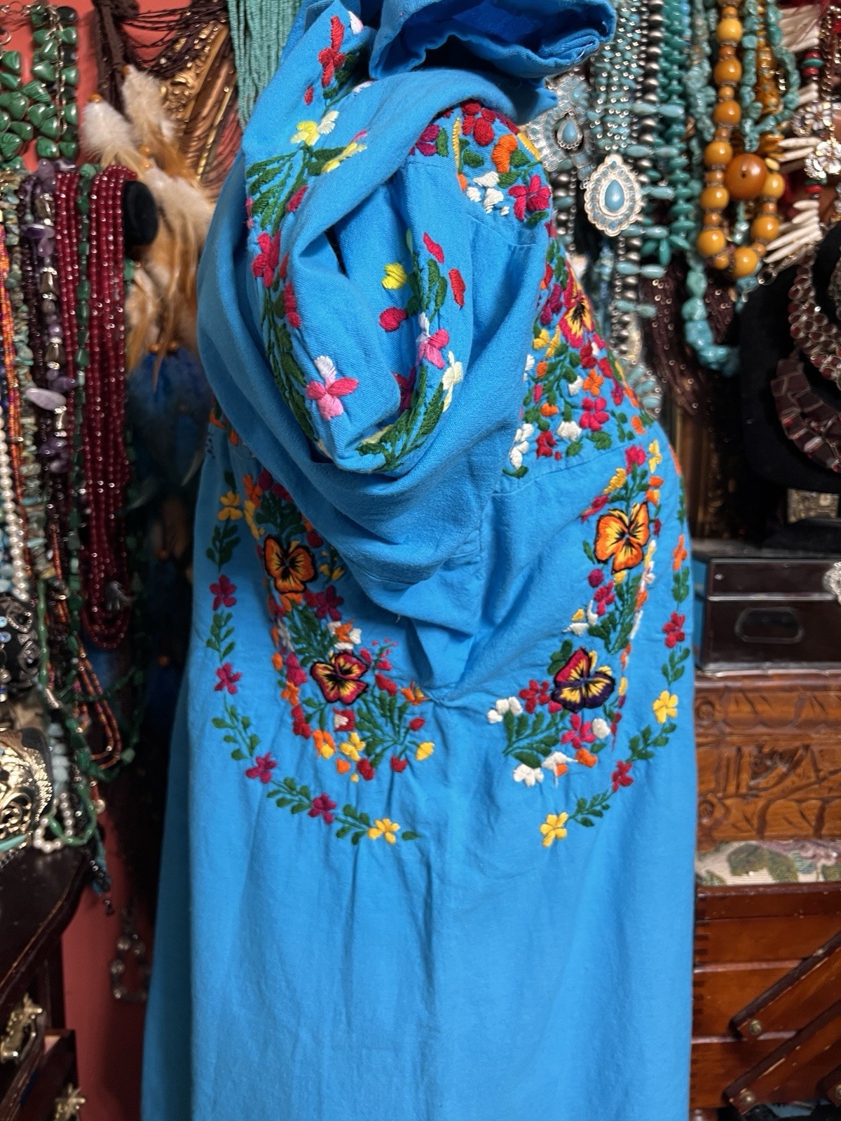как выглядит Gorgeous Oaxaca Mexico Turquoise Long Sleeve Tunic Multi Color Embroidery L/XL фото
