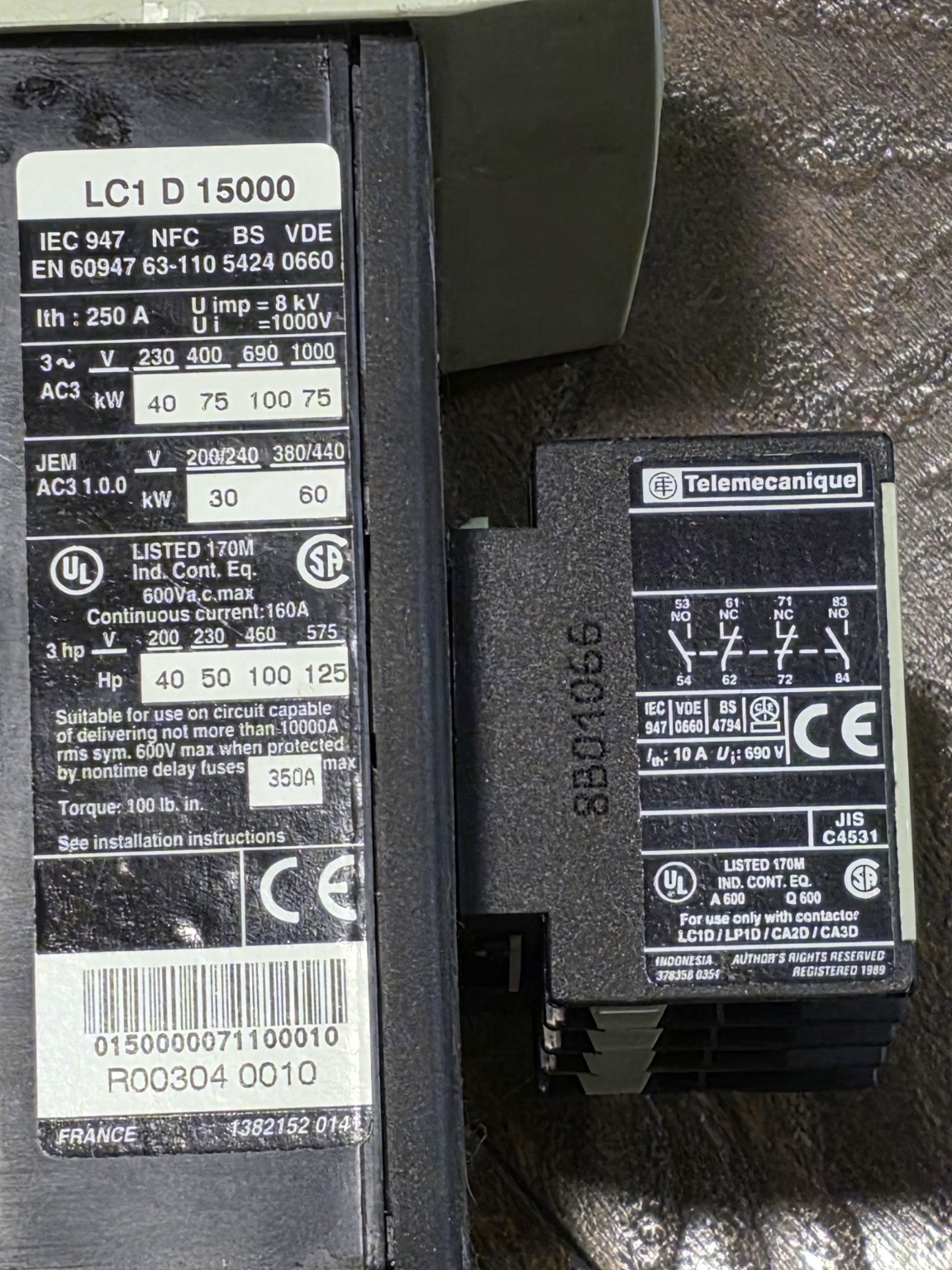 Telemecanique LC1D15000 IEC Contactor with LA1 DN22 Auxiliary Block 3-Pole 250A