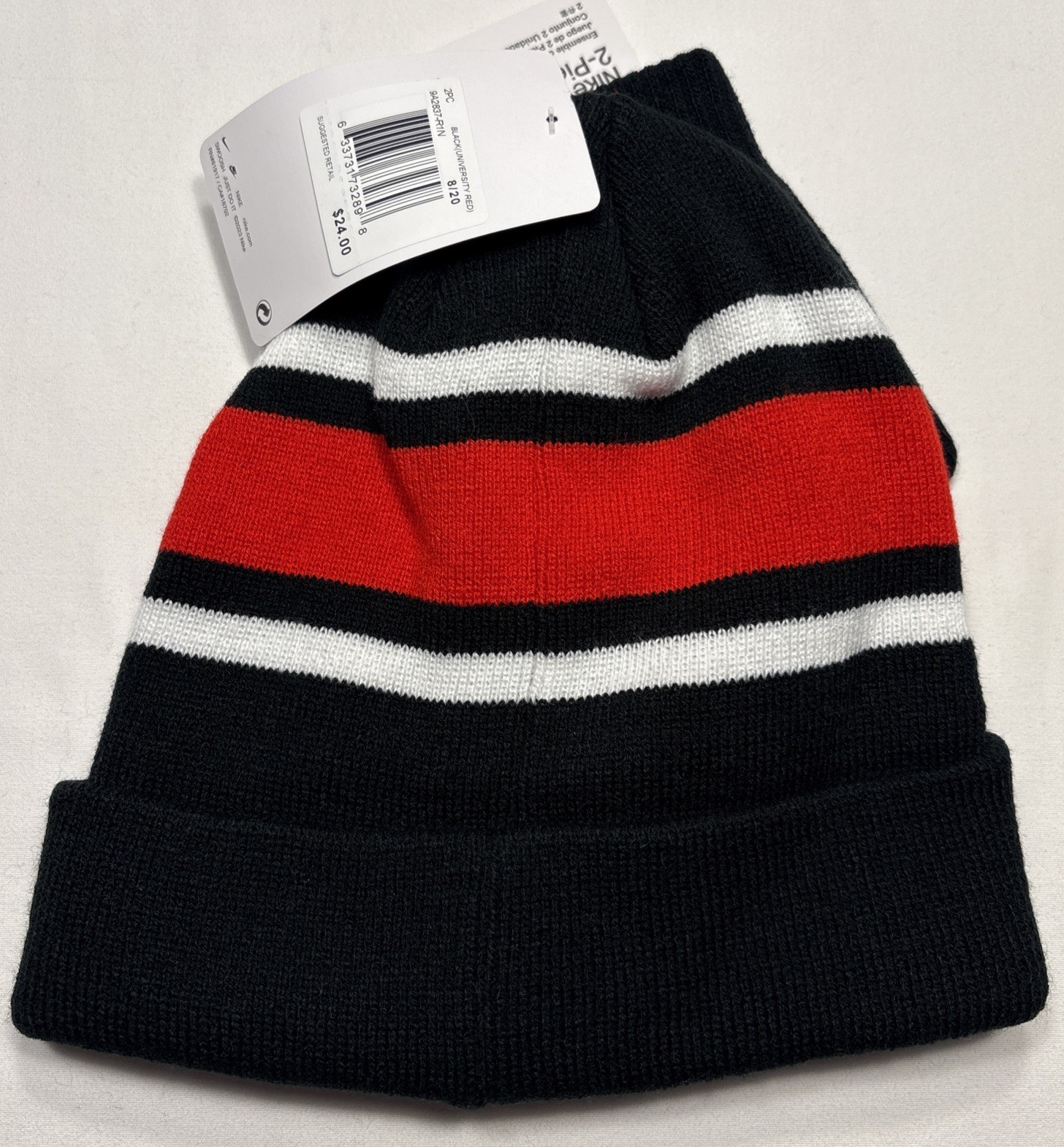 как выглядит Nike KIDS Cuff Beanie Hat Gloves 2 Piece Set - Black Red White FREE SHIP 24 фото