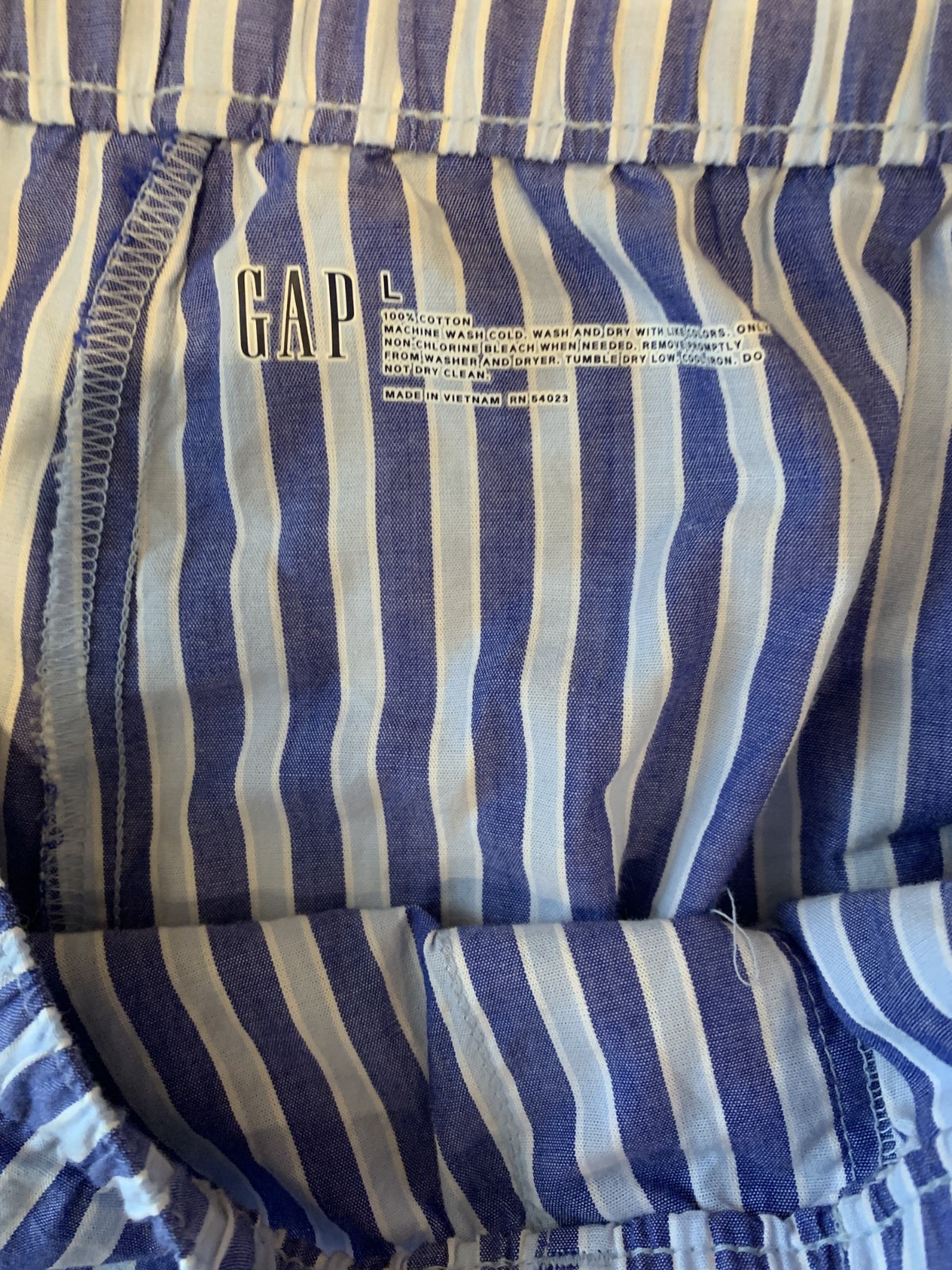 как выглядит Gap pajamas pants large l 100 cotton weave drawstring pockets blue white фото