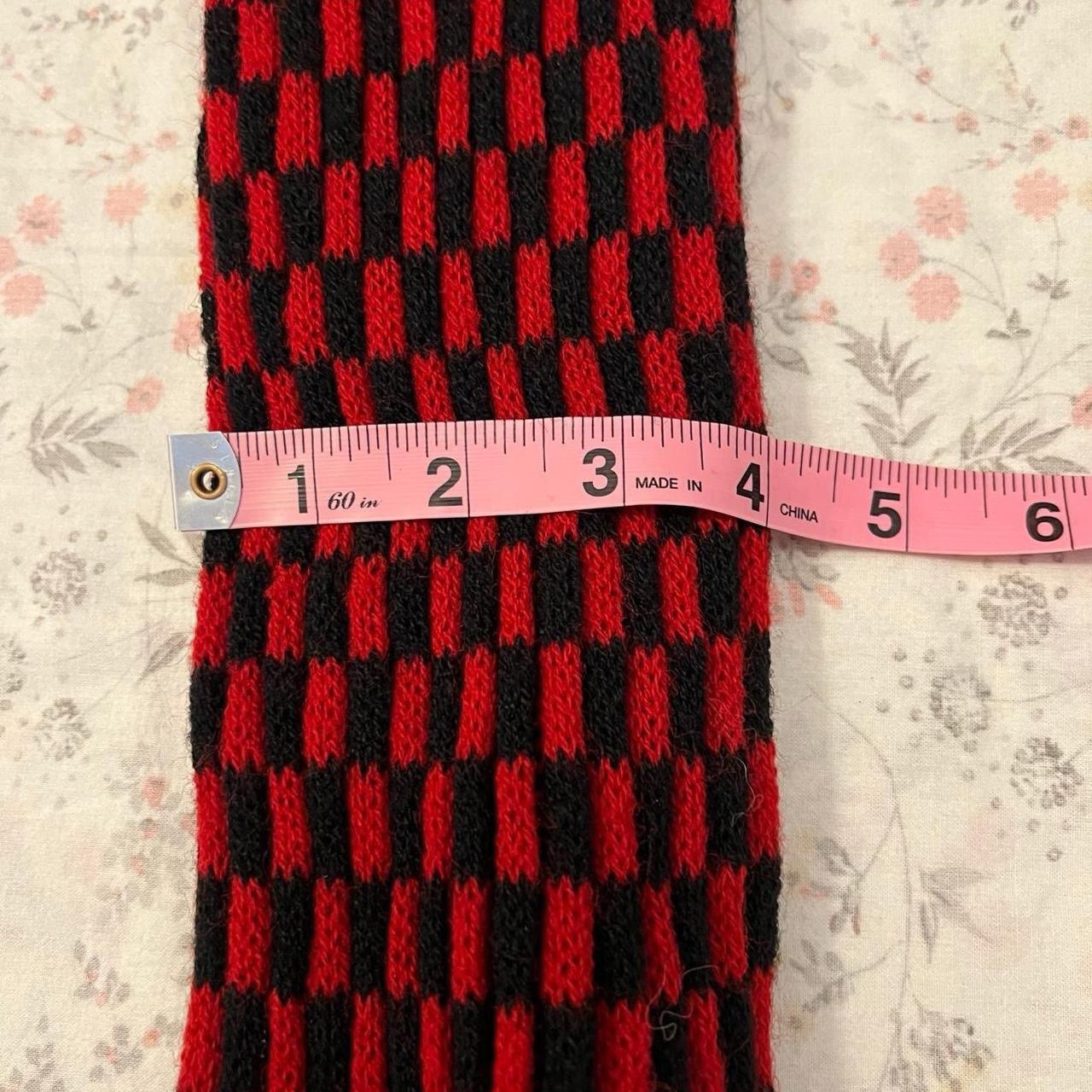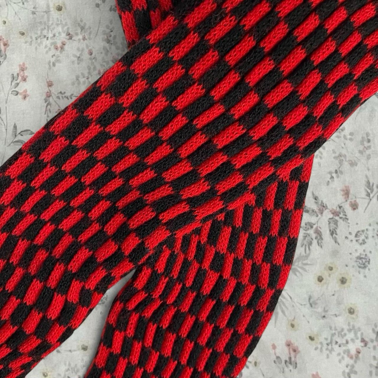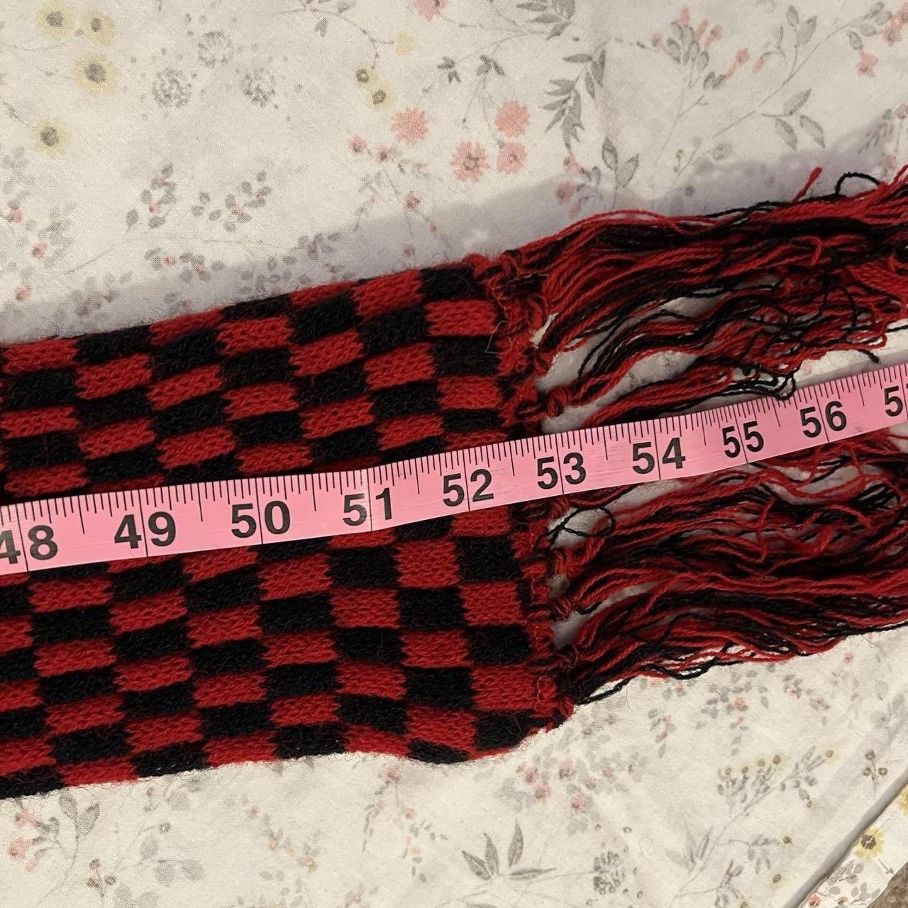 как выглядит Vintage 70s Checkered Scarf Fringe 3D Double Sided Red Black Adjustable Width фото