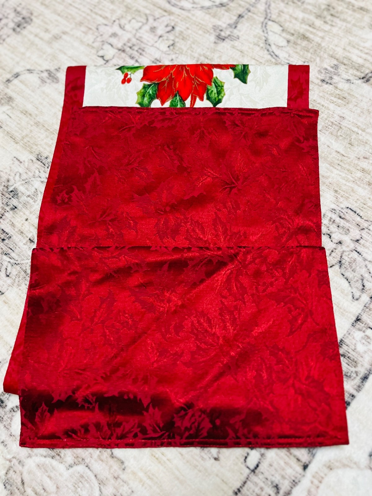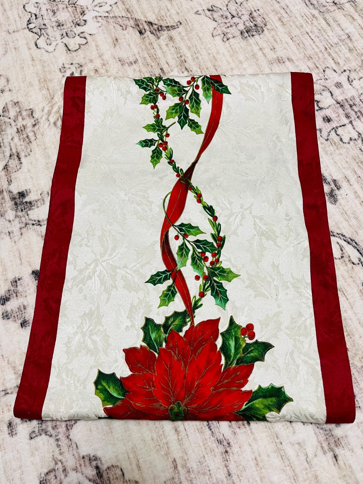 • Homvare Christmas Holiday Poinsettia and Garland Fabric Table Runner 14 68