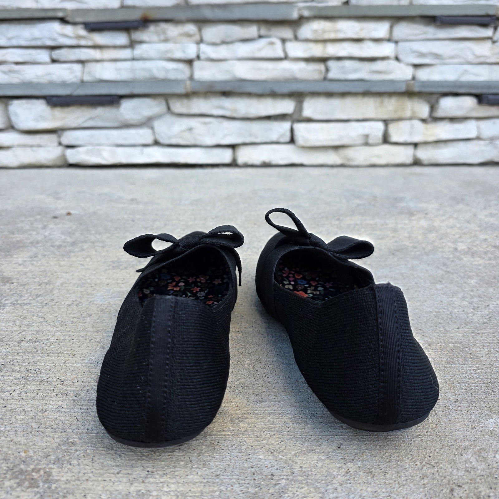 Skechers Cleo Stretch Fit Wild Charmer Flats Women s 7.5 Black Knit Bow Memory