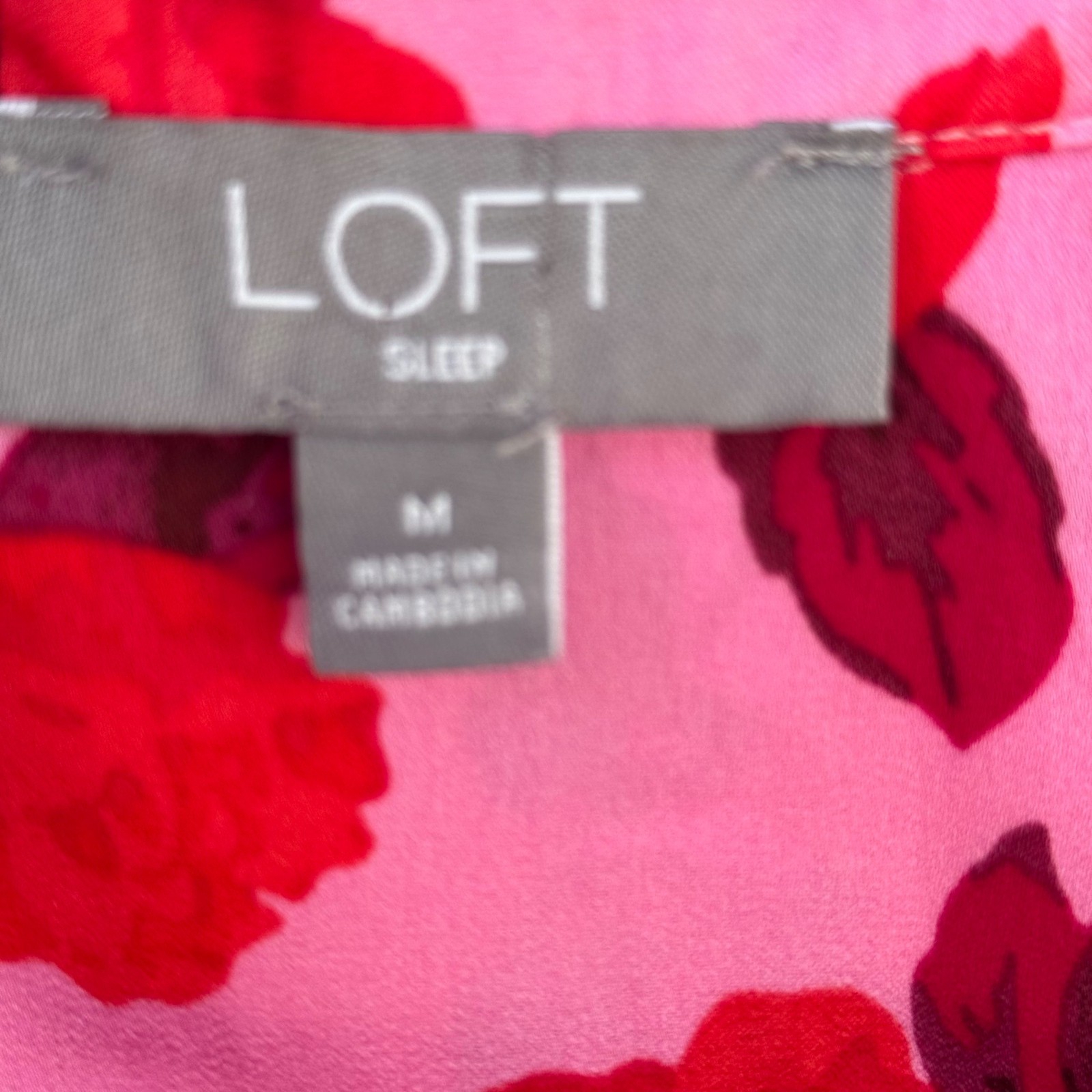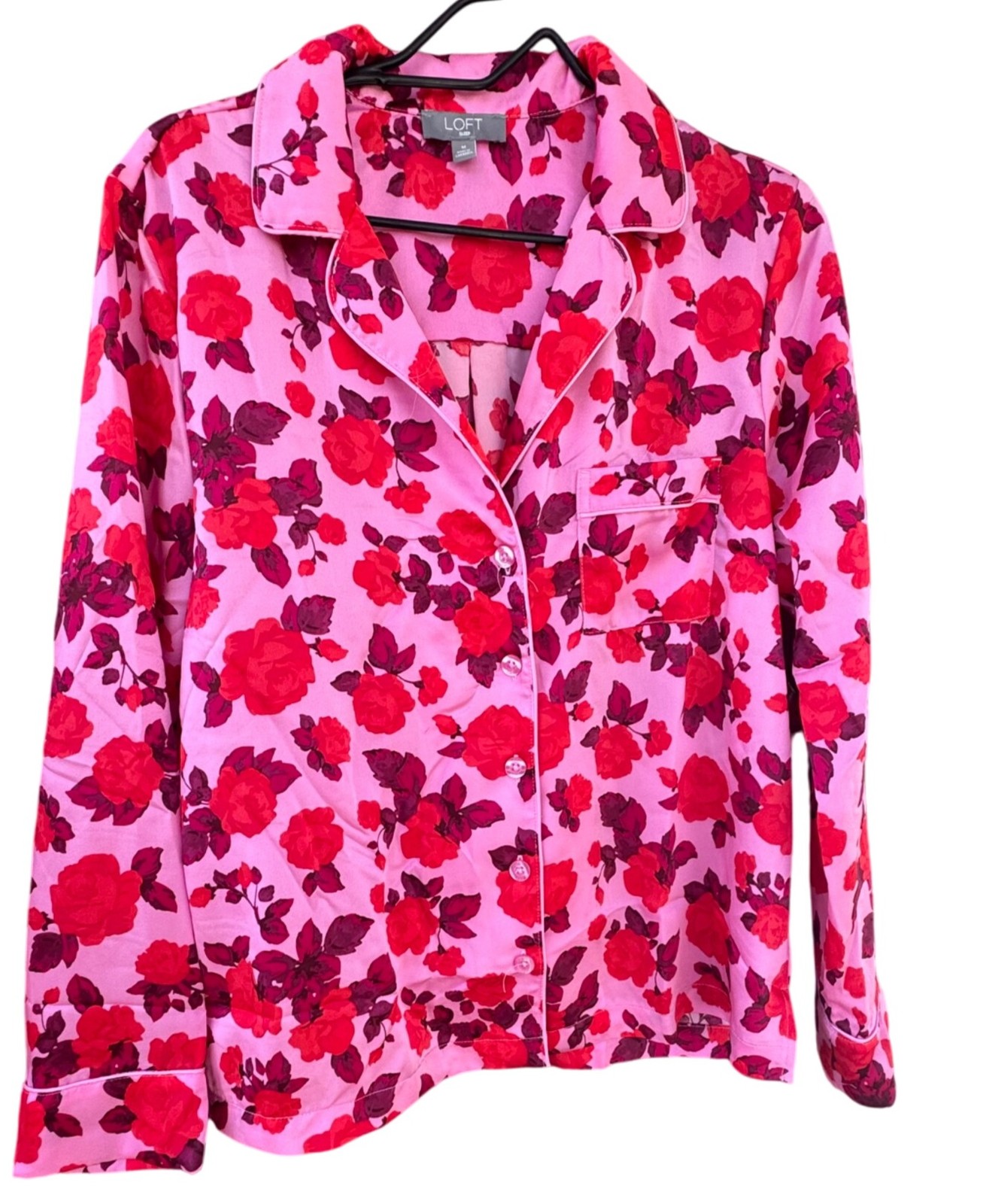 Loft Womens Pink Red Floral Pajama Set Size M - Button-Up Top Elastic Waist