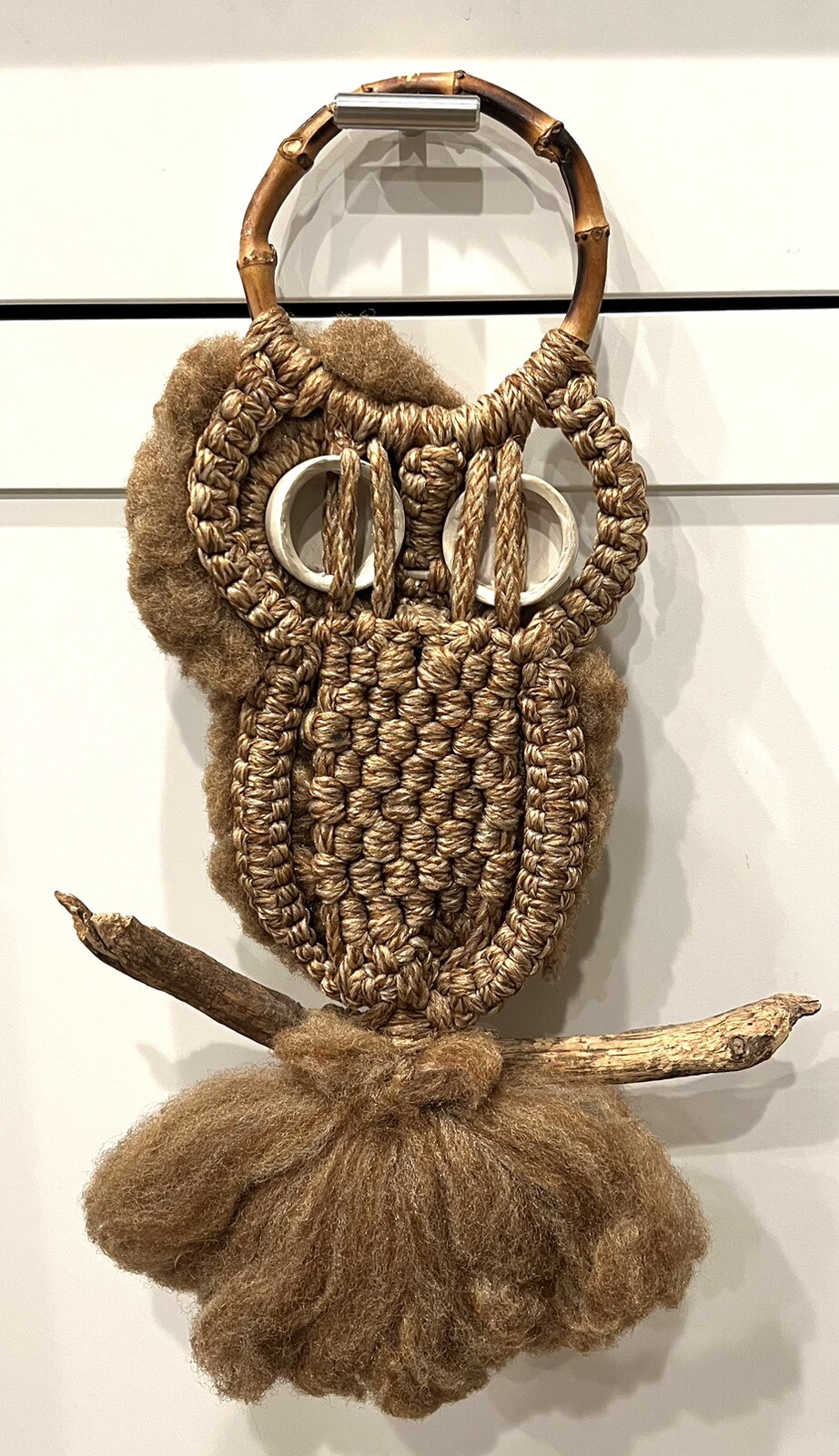 как выглядит Vintage Macrame Owl Ceramic Eyes Wall Hanging Boho Mid Century Modern 70