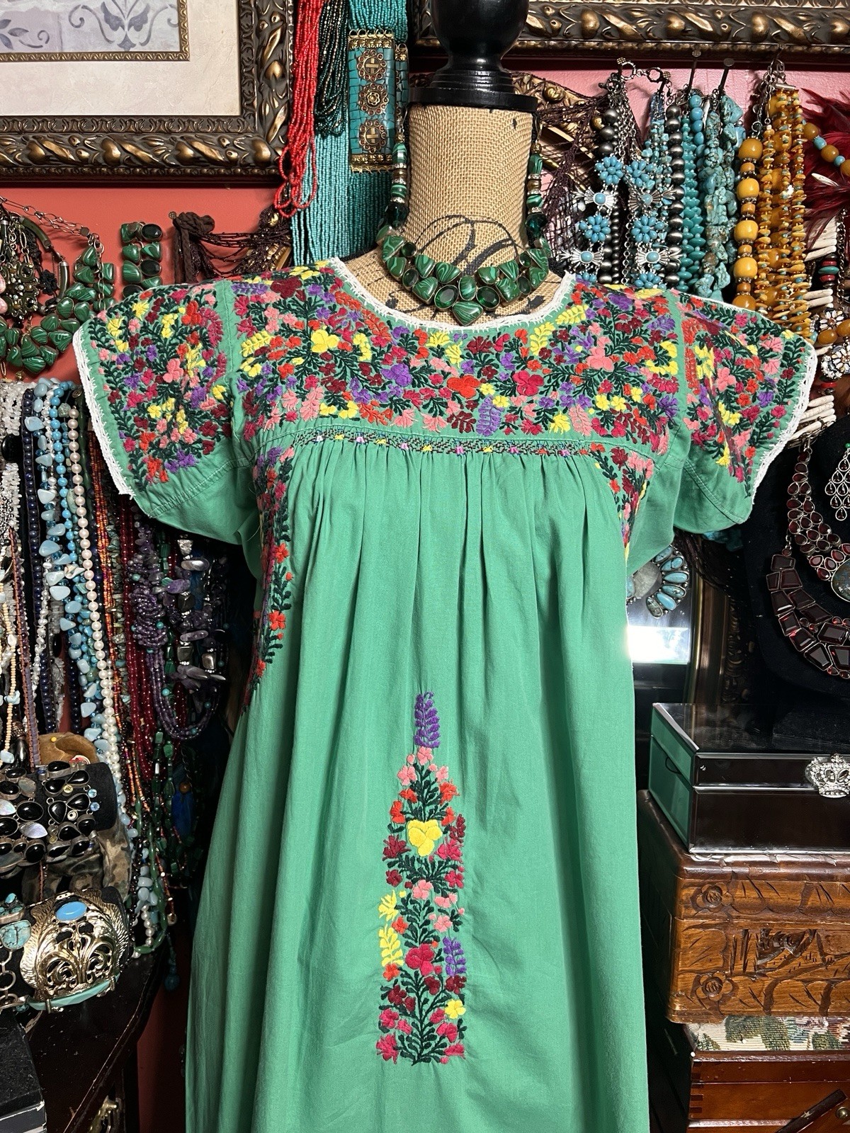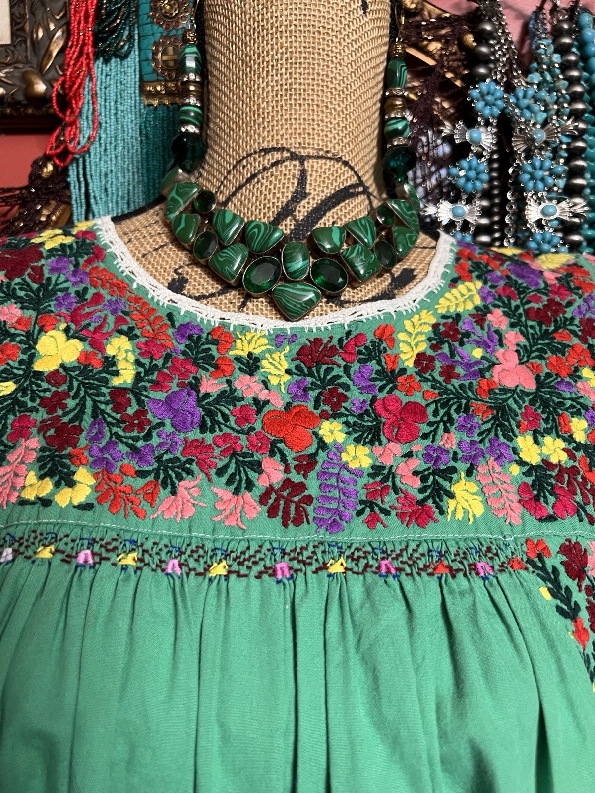 как выглядит Beautiful Green Mexican Oaxaca Multi Color Cotton Embroidery White Crochet M/L фото