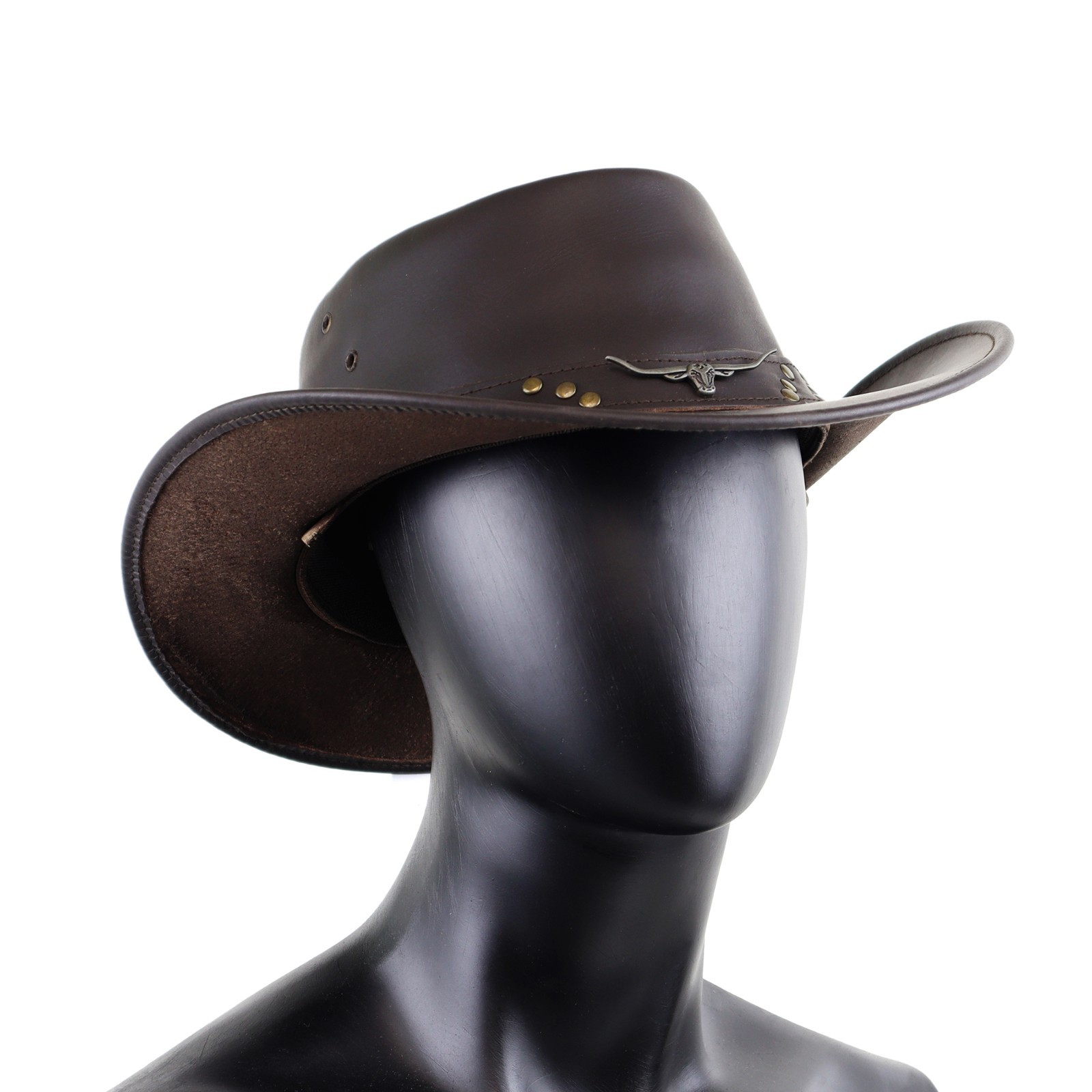 как выглядит Stellman Brown Genuine Real Leather Cowboy Western Vintage Hat for Men and Women фото