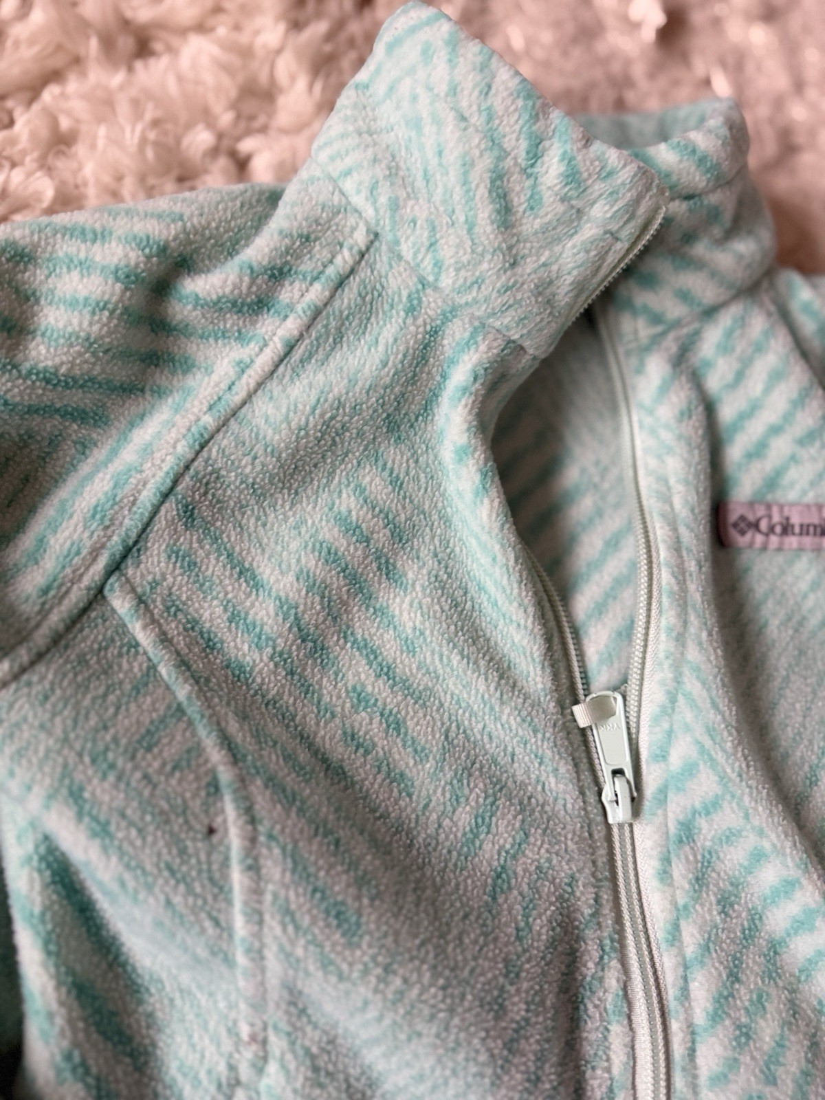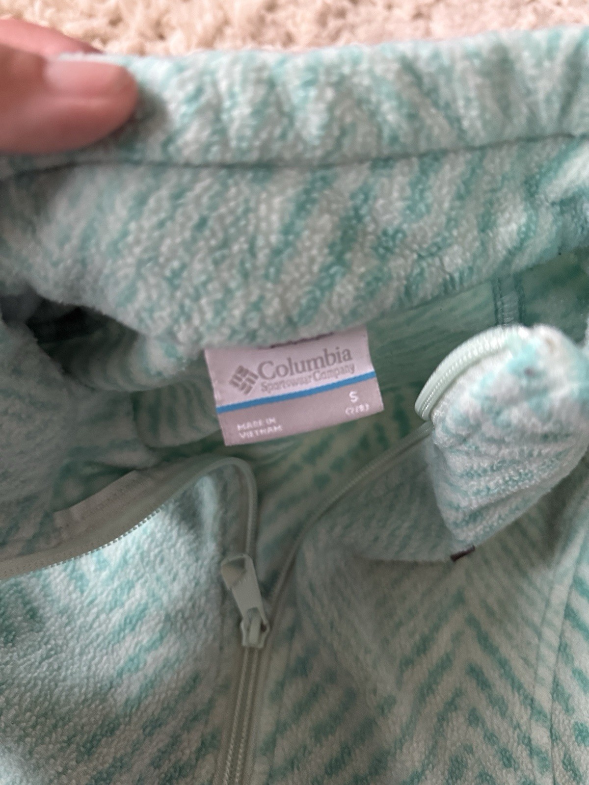 Columbia fleece jacket kids girls Small 7/8 green full zip high neck outdoor