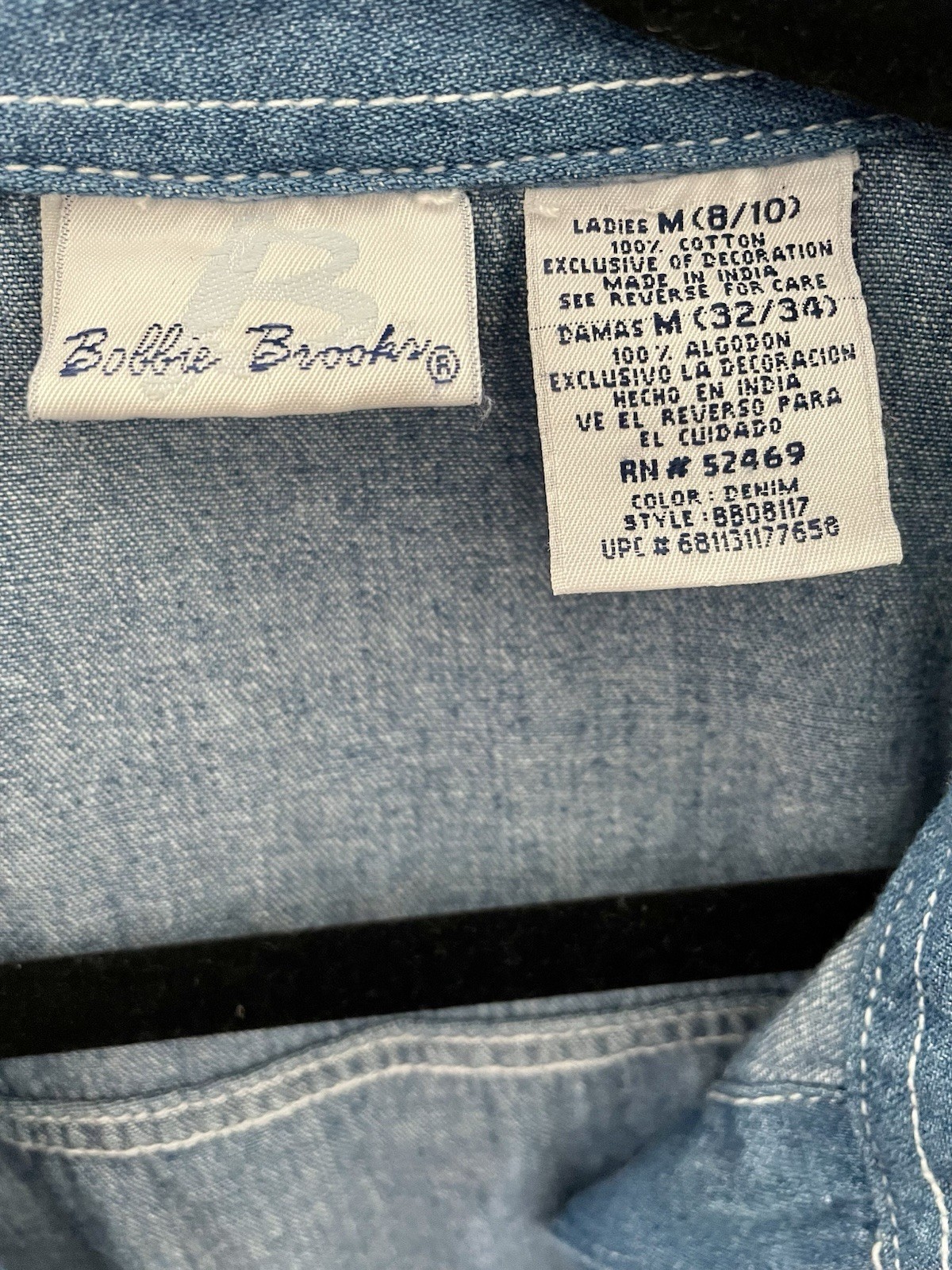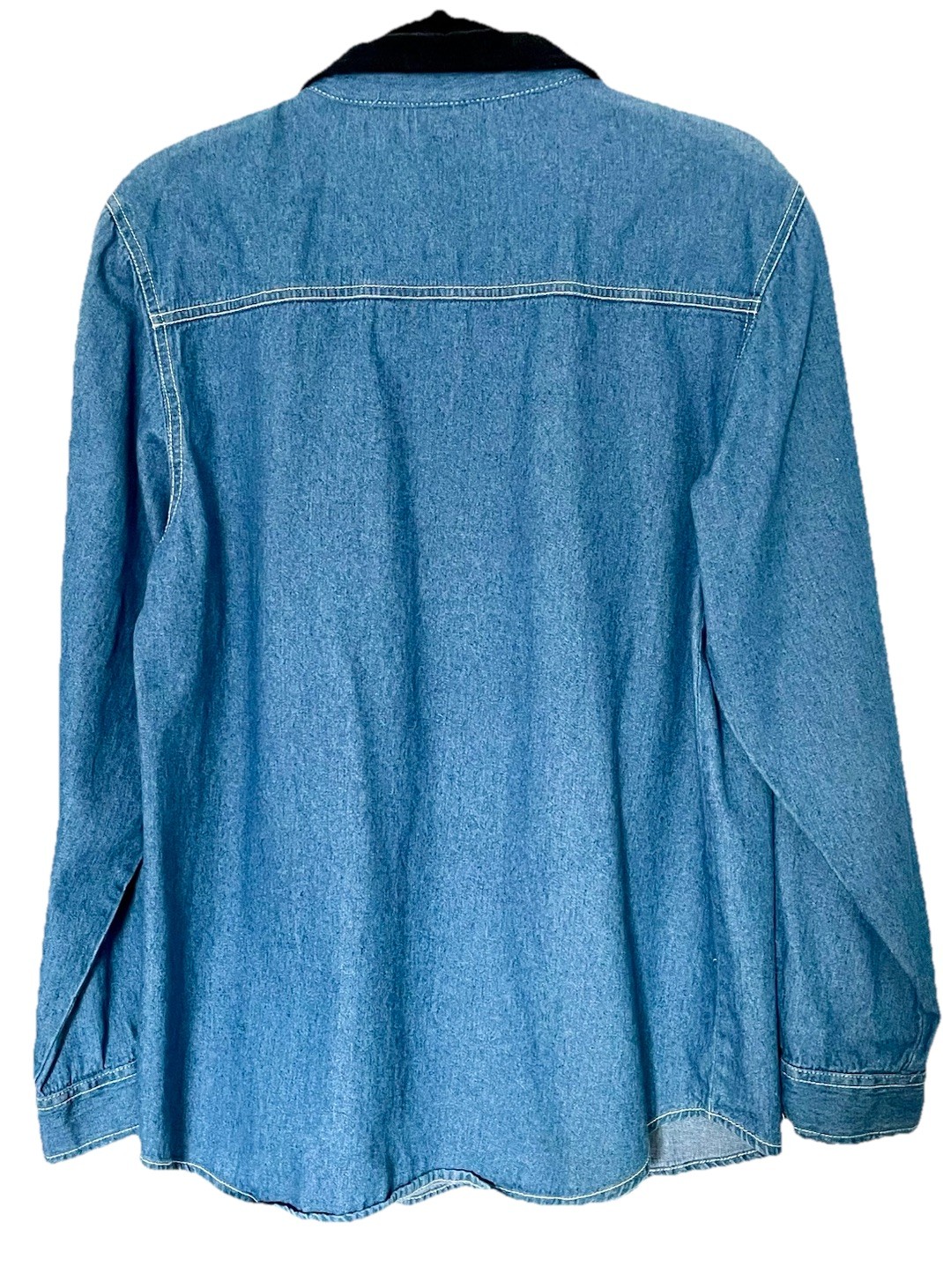 как выглядит Bobbie Brooks Christmas Embroidered Denim Shirt Velvet Collar Vintage Med фото