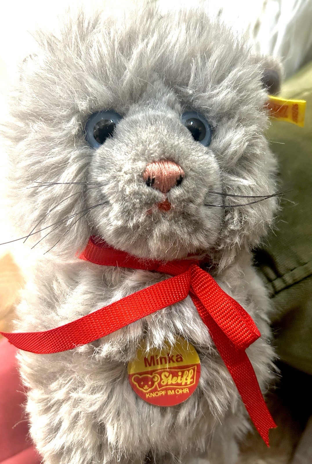 как выглядит STEIFF Persian Cat Plush Minka Blue Eyes 10" Gray Stuffed Toy Ear Tag W Germany фото