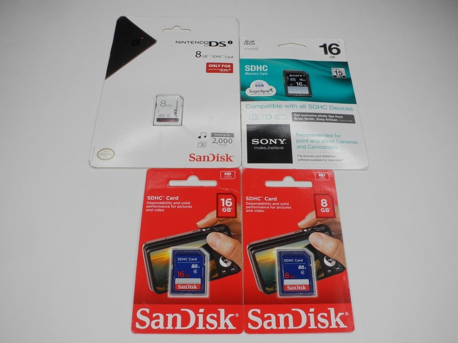 NEW Lot Of 4x SanDisk / Sony 8GB / 16GB SDHC Camera Memory Cards