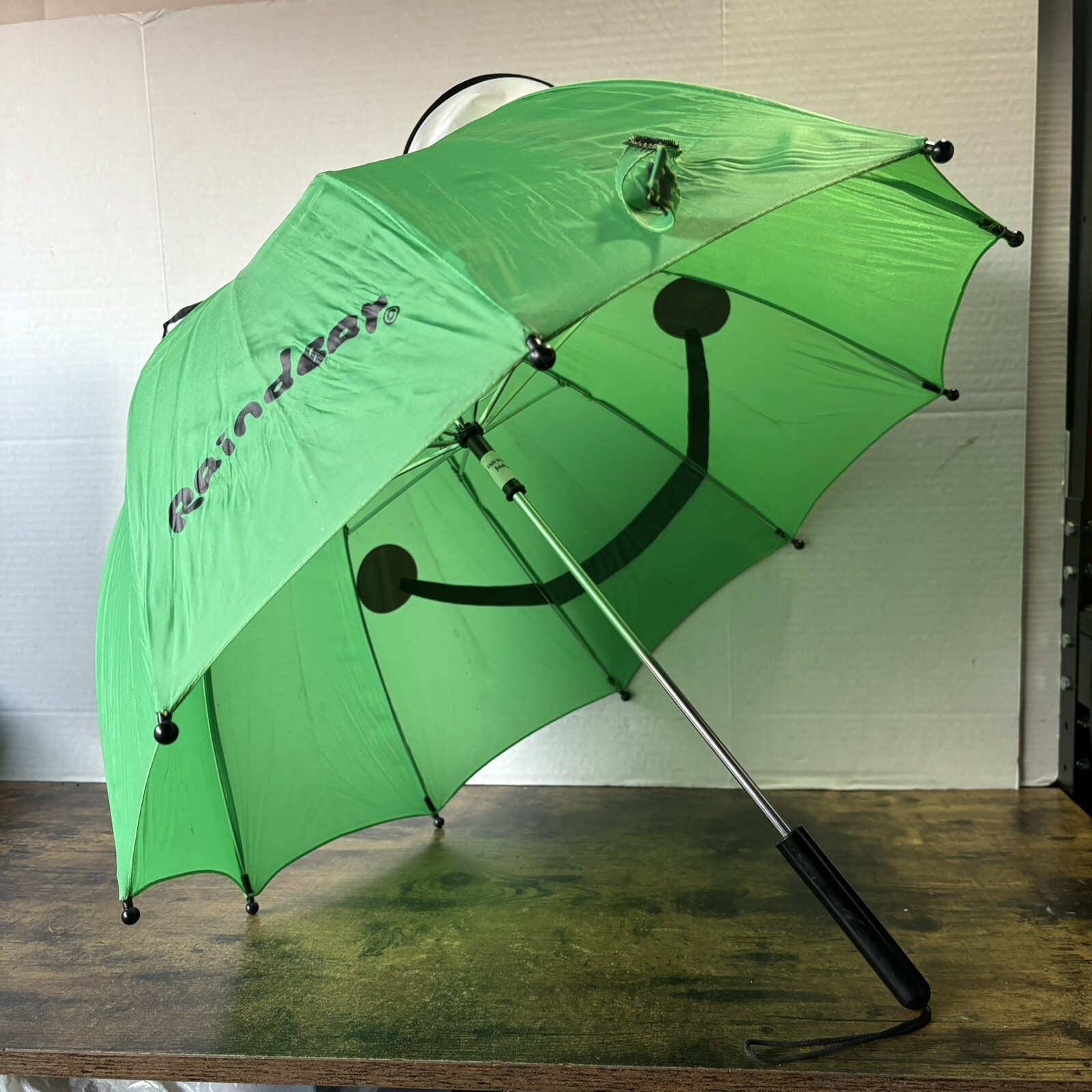 Vintage RainDear Folding Green Smiley Face Frog Umbrella W Pop Out Eyes