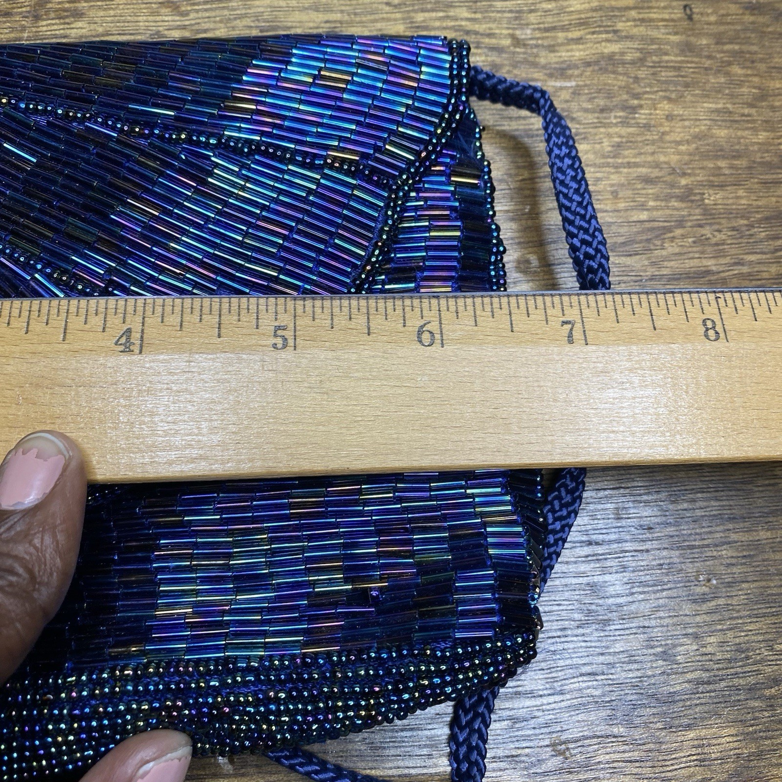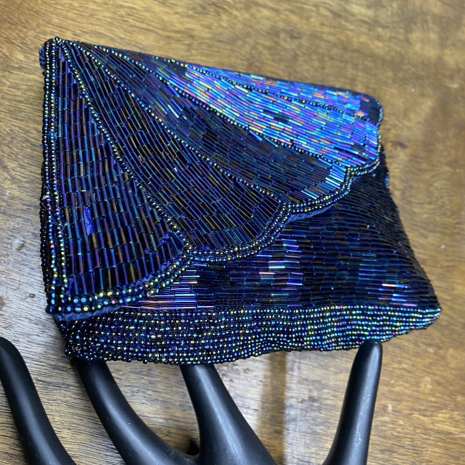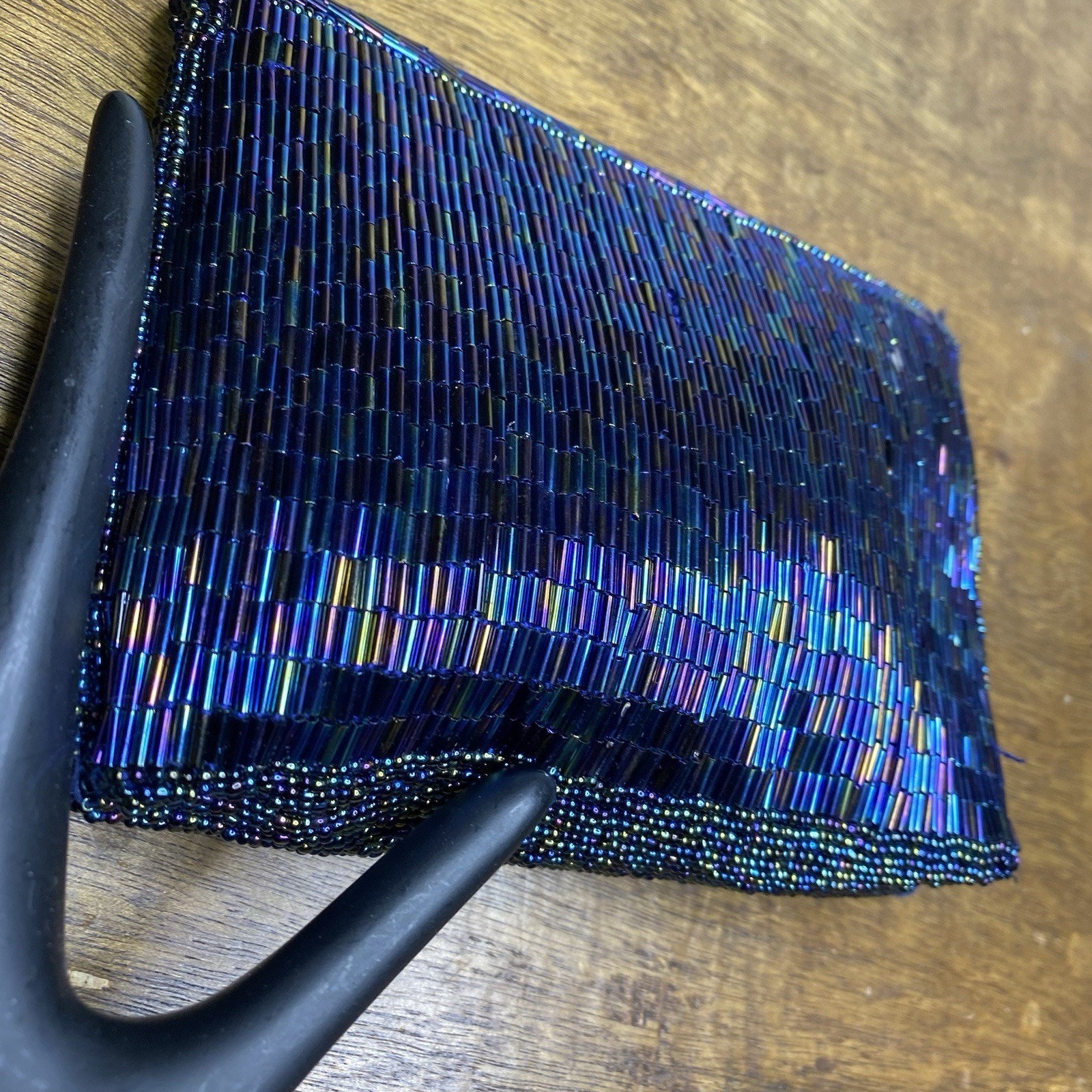 как выглядит Vintage Beaded Evening Bag Blue Iridescent Party Clutch Purse фото