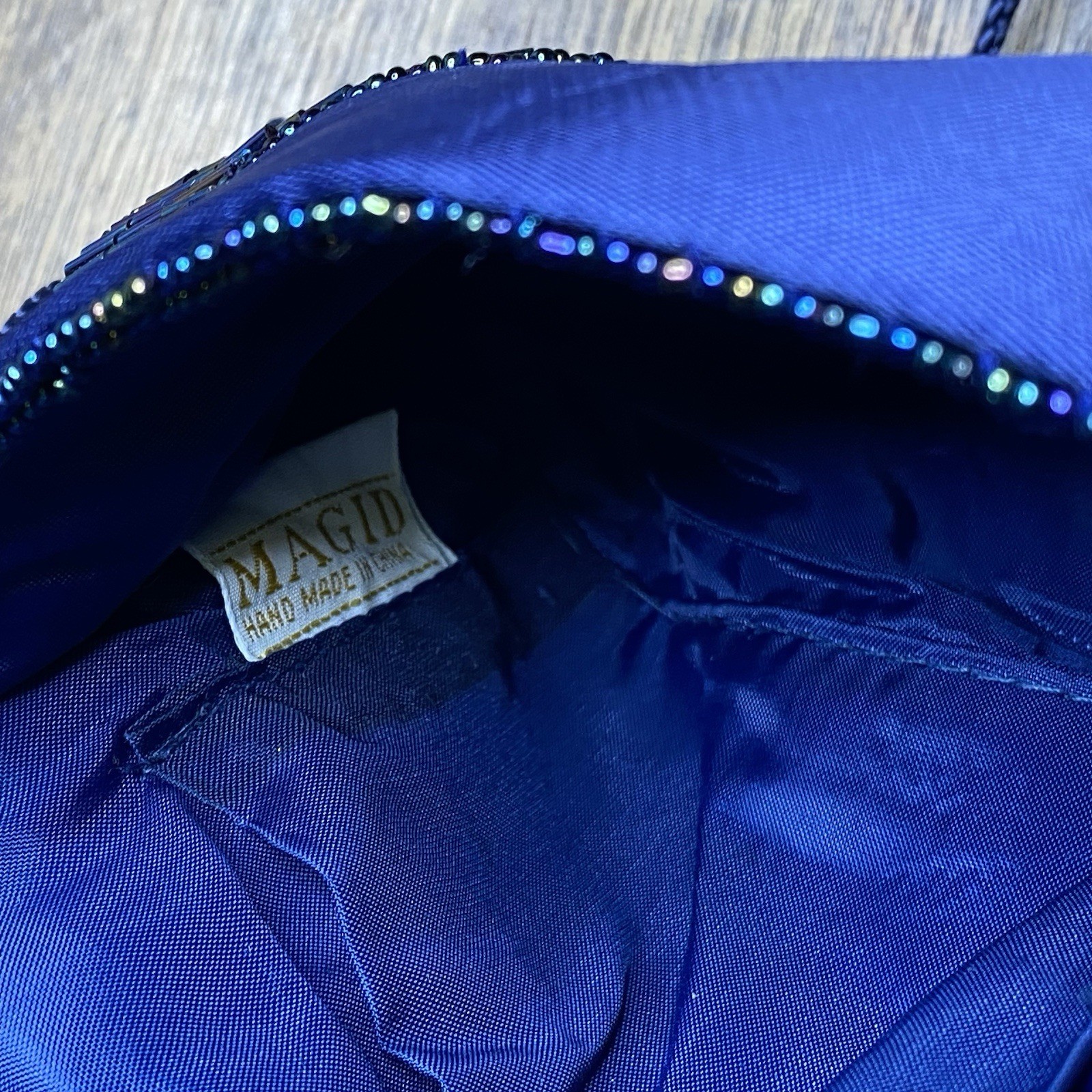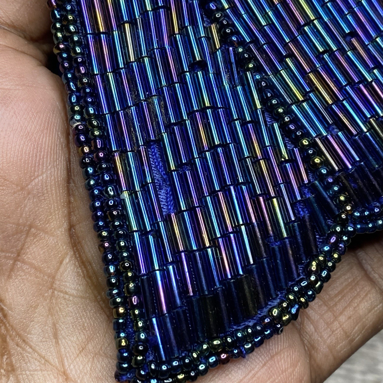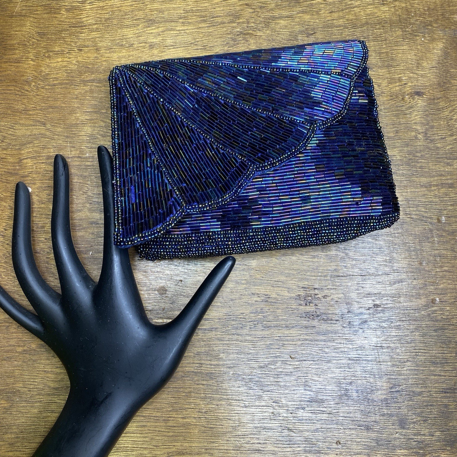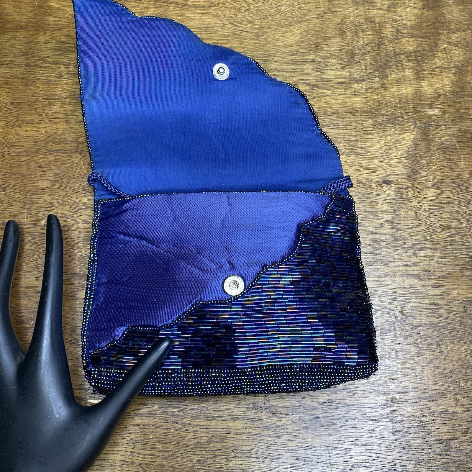 как выглядит Vintage Beaded Evening Bag Blue Iridescent Party Clutch Purse фото
