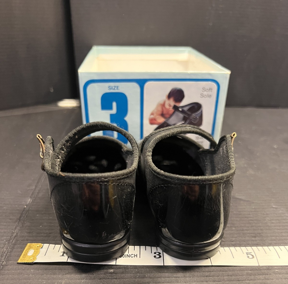 как выглядит Vintage Baby Deer Classic BLACK Soft Sole Shoes Size 3 6-9 months - W/BOX фото