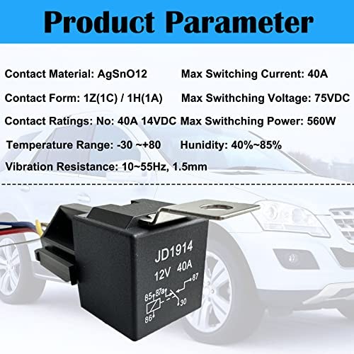 5 Pack 5 PIN 12V Relay with Harness, 40AMP 12 Volt Relay Automotive Relays