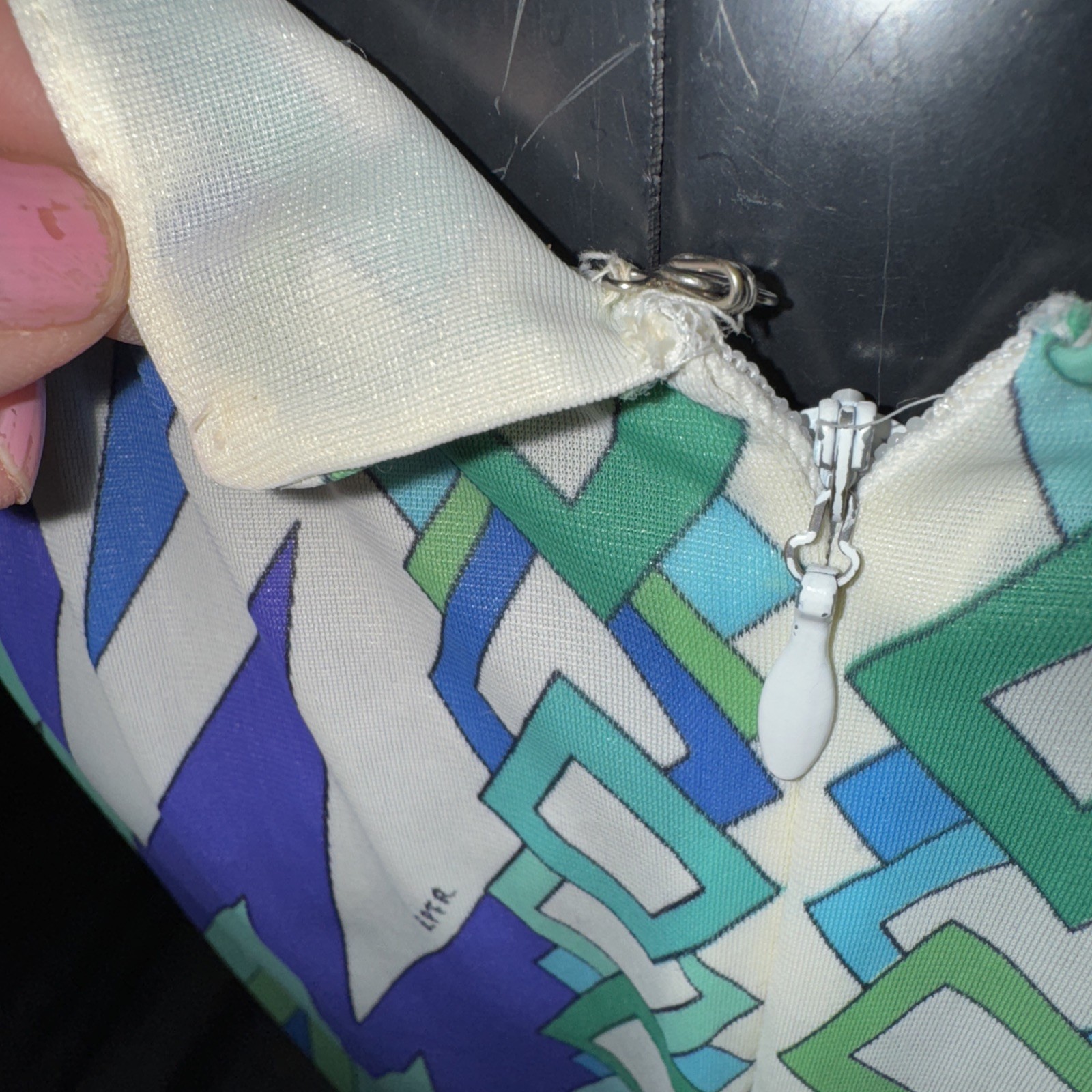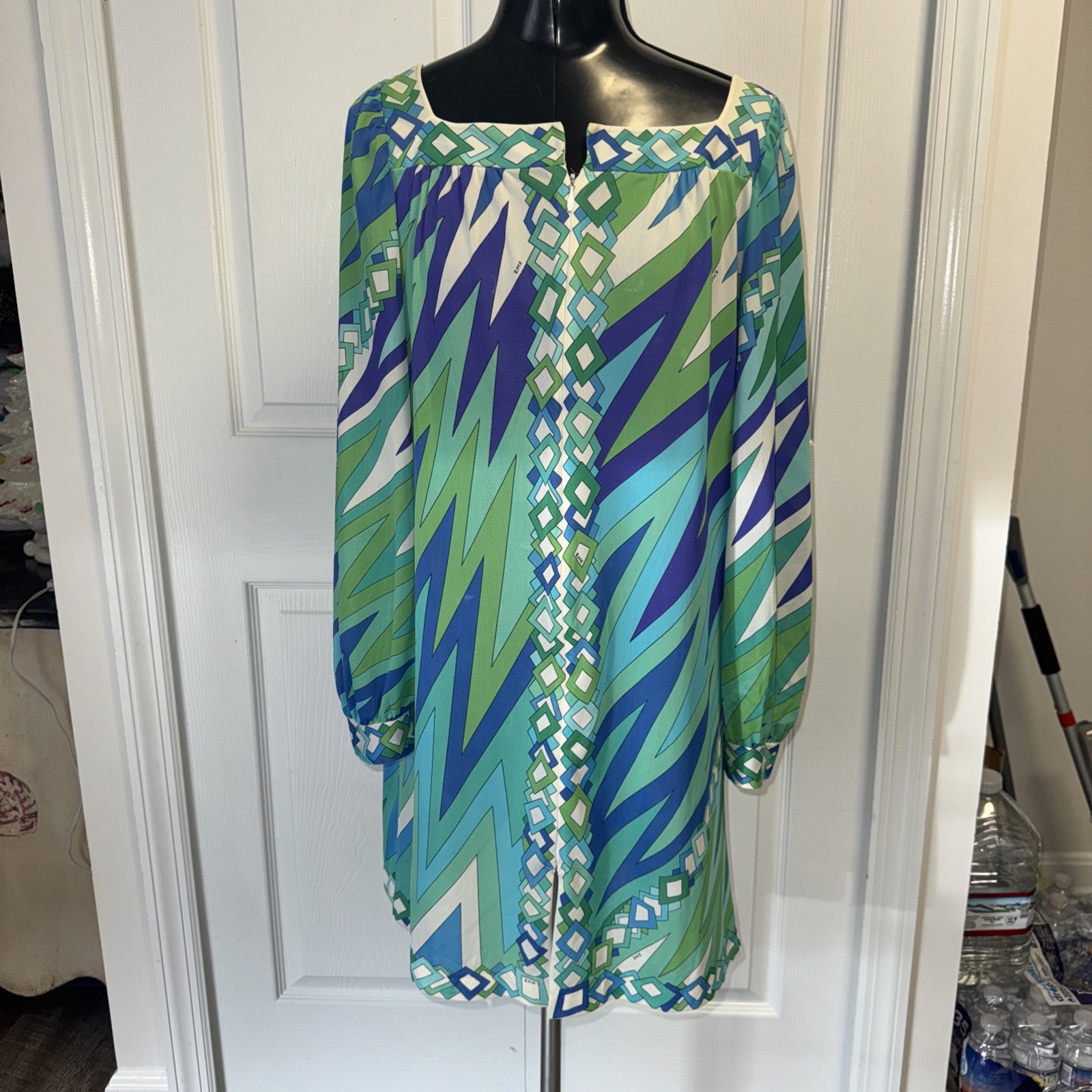 VTG Emilio Pucci Formfit Rogers Mini Kaftan Zip Shift LOUNGE Dress OP ART MOD M