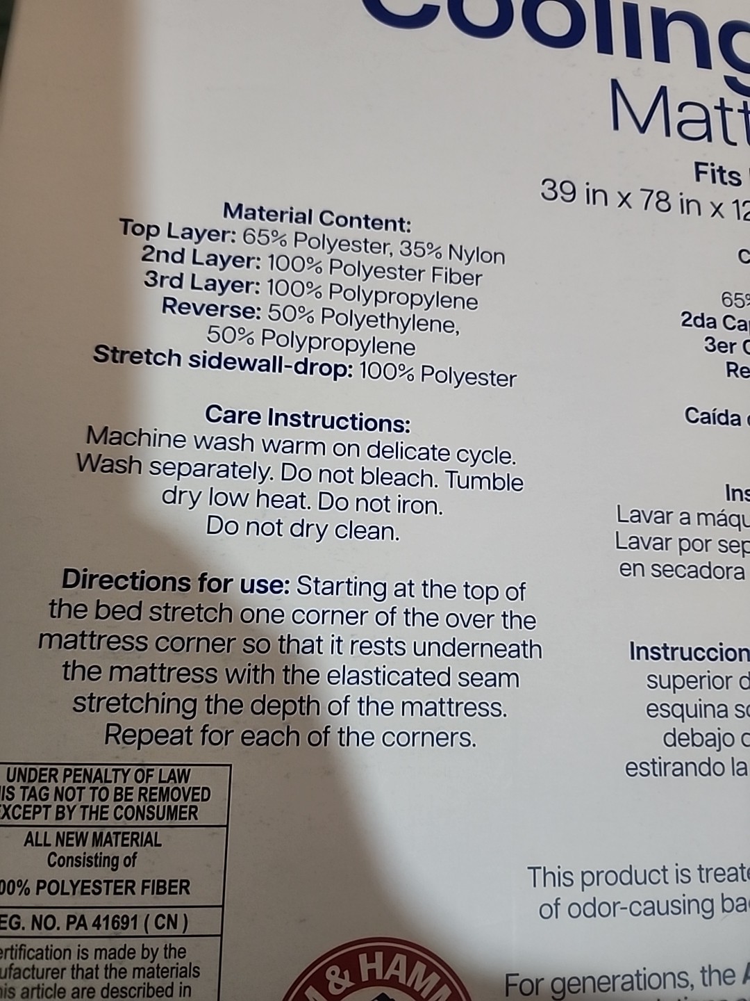 как выглядит NWT Arm Hammer Twin/Twin XL Cooling Comfort Mattress Pad WATERPROOF FITTED фото