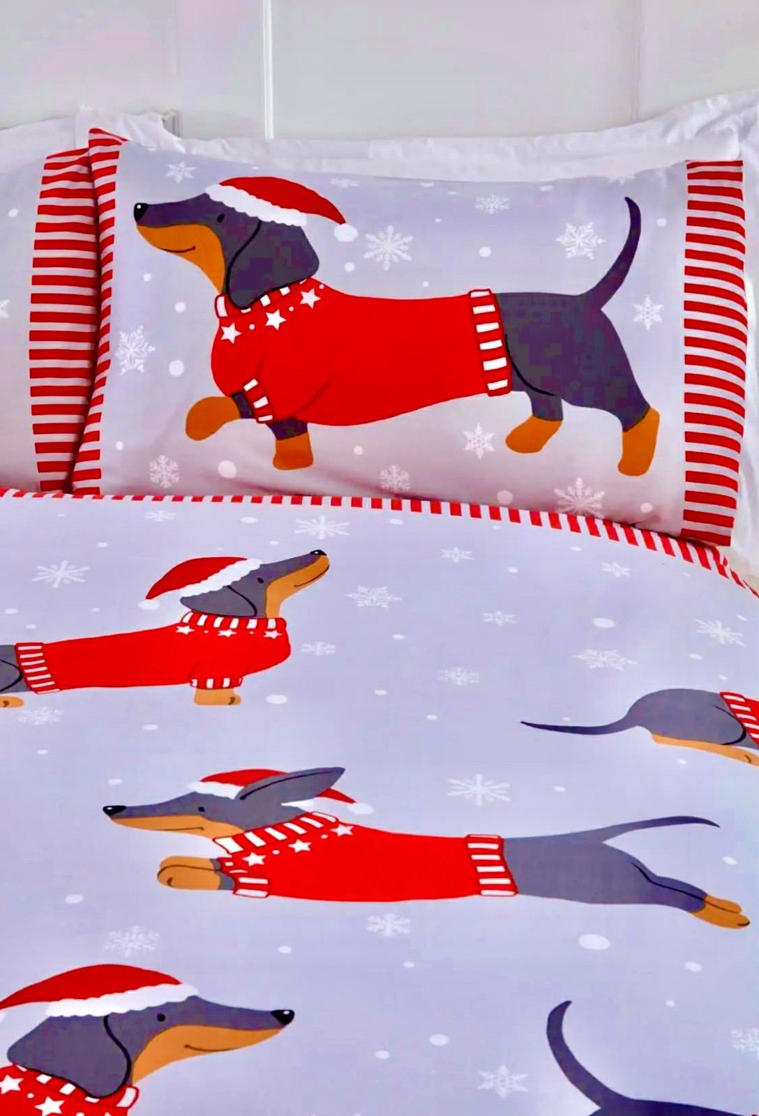 Rapport Home Christmas DACHSHUND THROUGH THE SNOW Duvet Set 3 Sizes Avail NEW