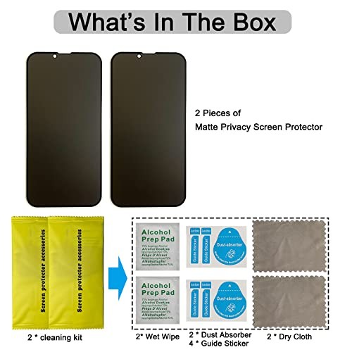 как выглядит 2 Pack Matte Privacy Screen Protector for iPhone 13/14/13 Pro, Anti-Glare Anti фото