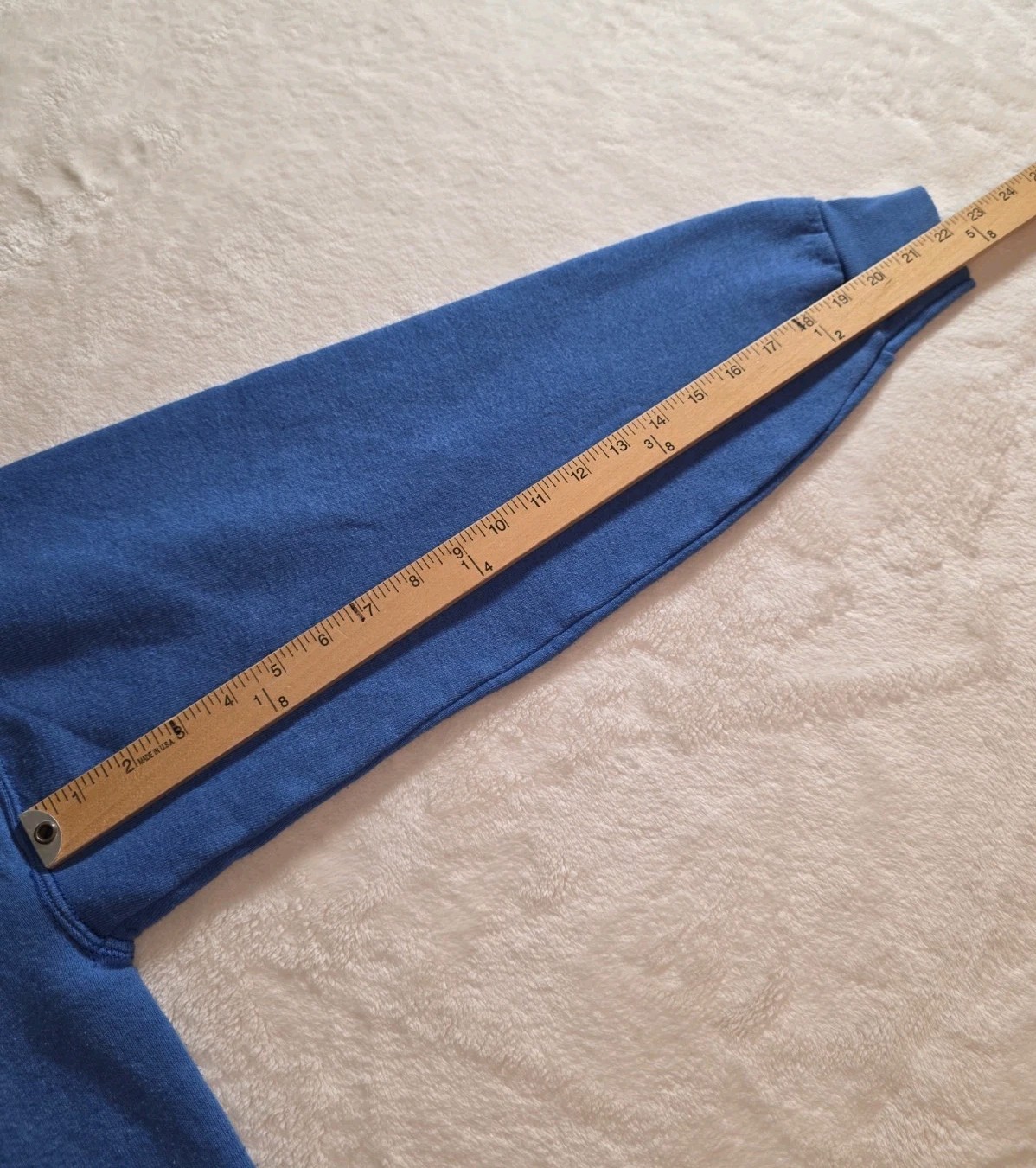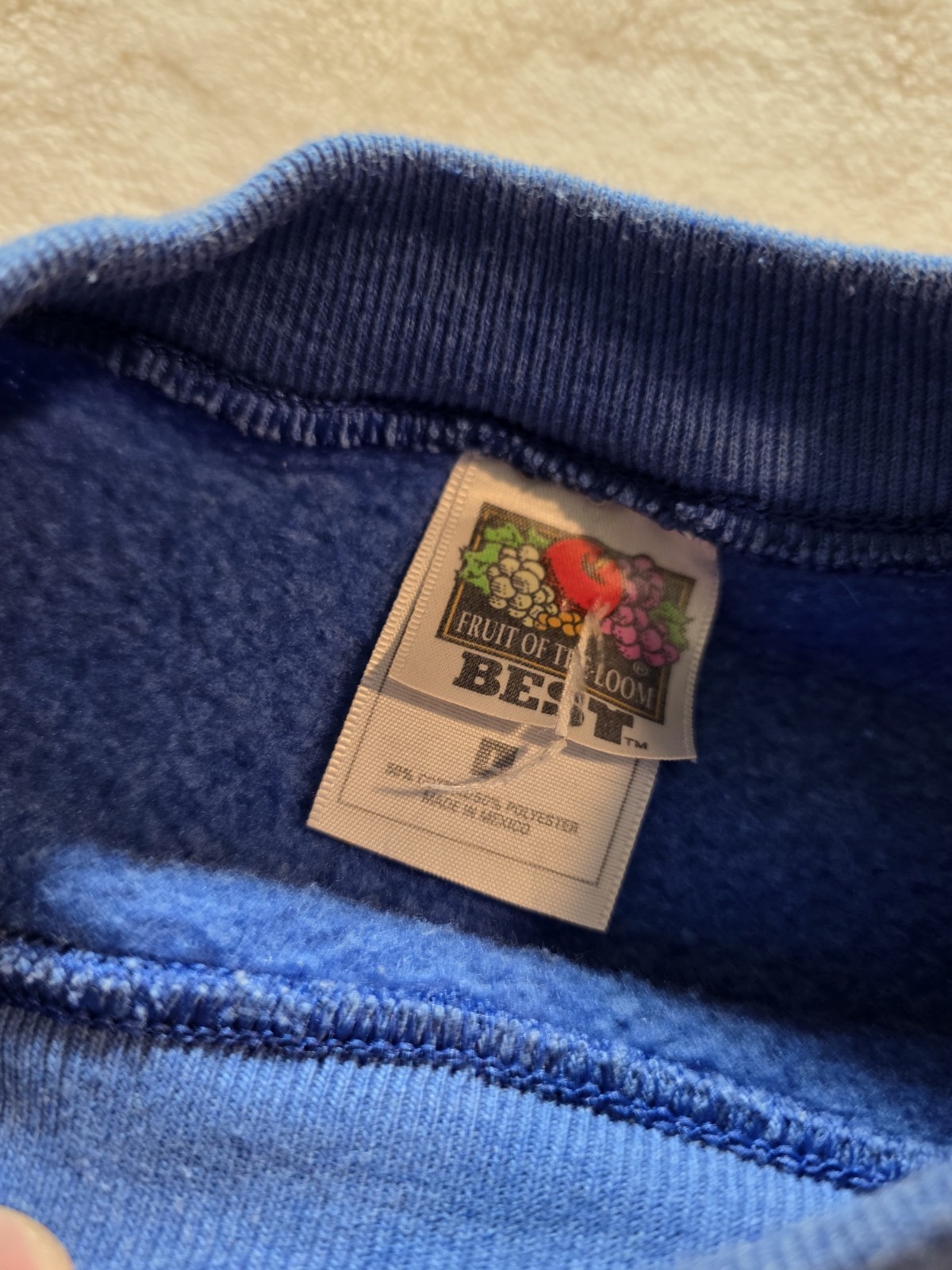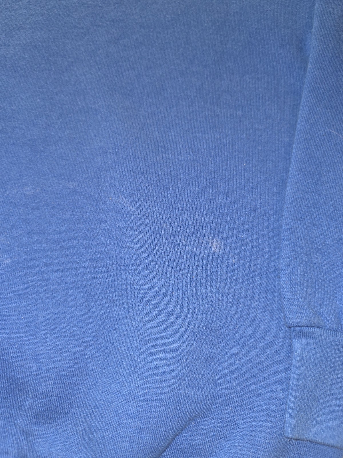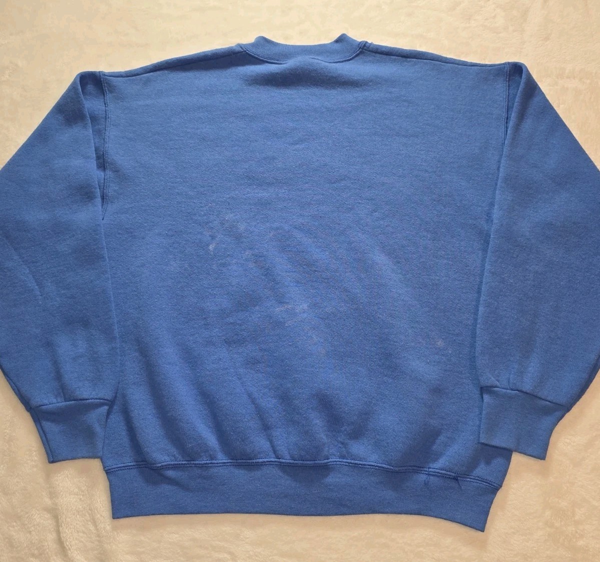как выглядит Vintage 90s Fruit Of The Loom Blue Blank Crew Neck Sweatshirt Mens LG Blemishes фото