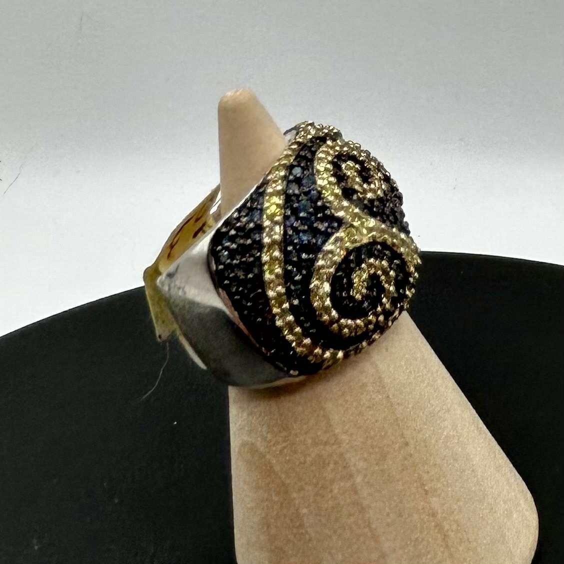 как выглядит Women s Sterling Silver with Gold Vermeil Simulated Sapphire Cocktail Ring  Siz фото