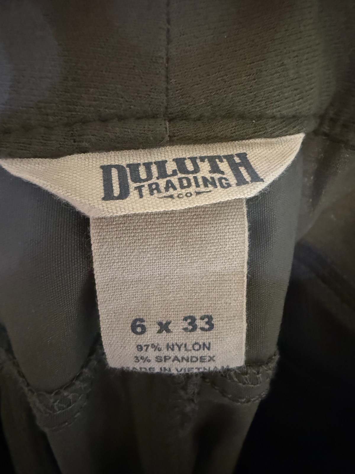 как выглядит Duluth Trading Pants Womens 6x33 Green Dry on the Fly Straight Leg Outdoor Cargo фото