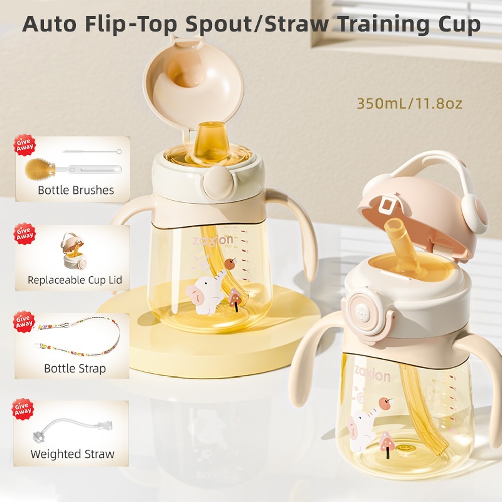 Baby 2-in-1 Spout Straw Sippy Training Cup w/ Auto Flip-Lid for Infants Toddlers