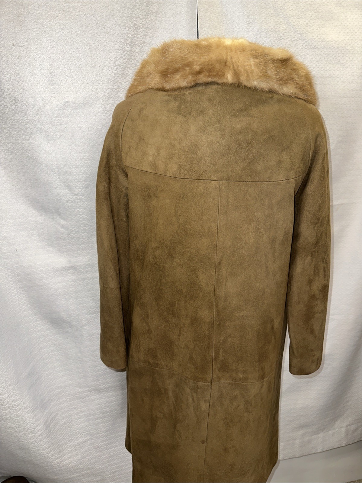 как выглядит VTG 60s Tan Suede Mid Length Coat Jacket With Fur Collar Pockets Women