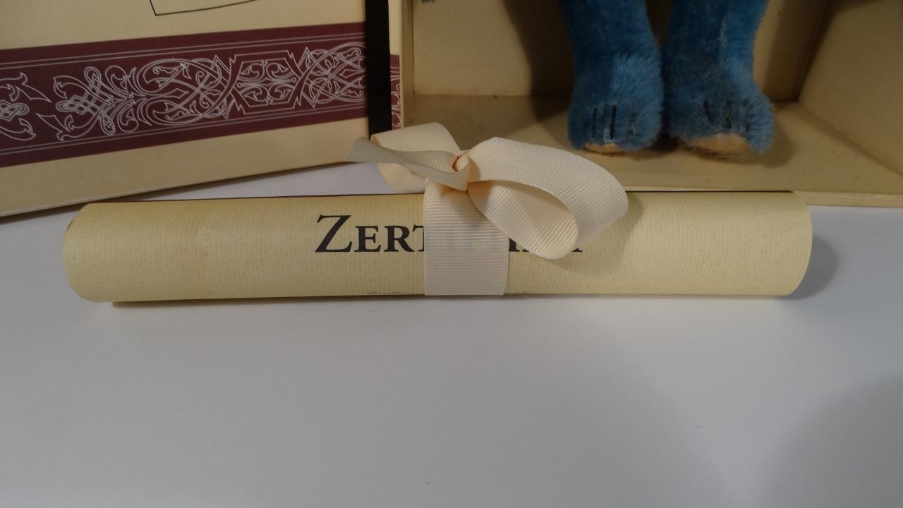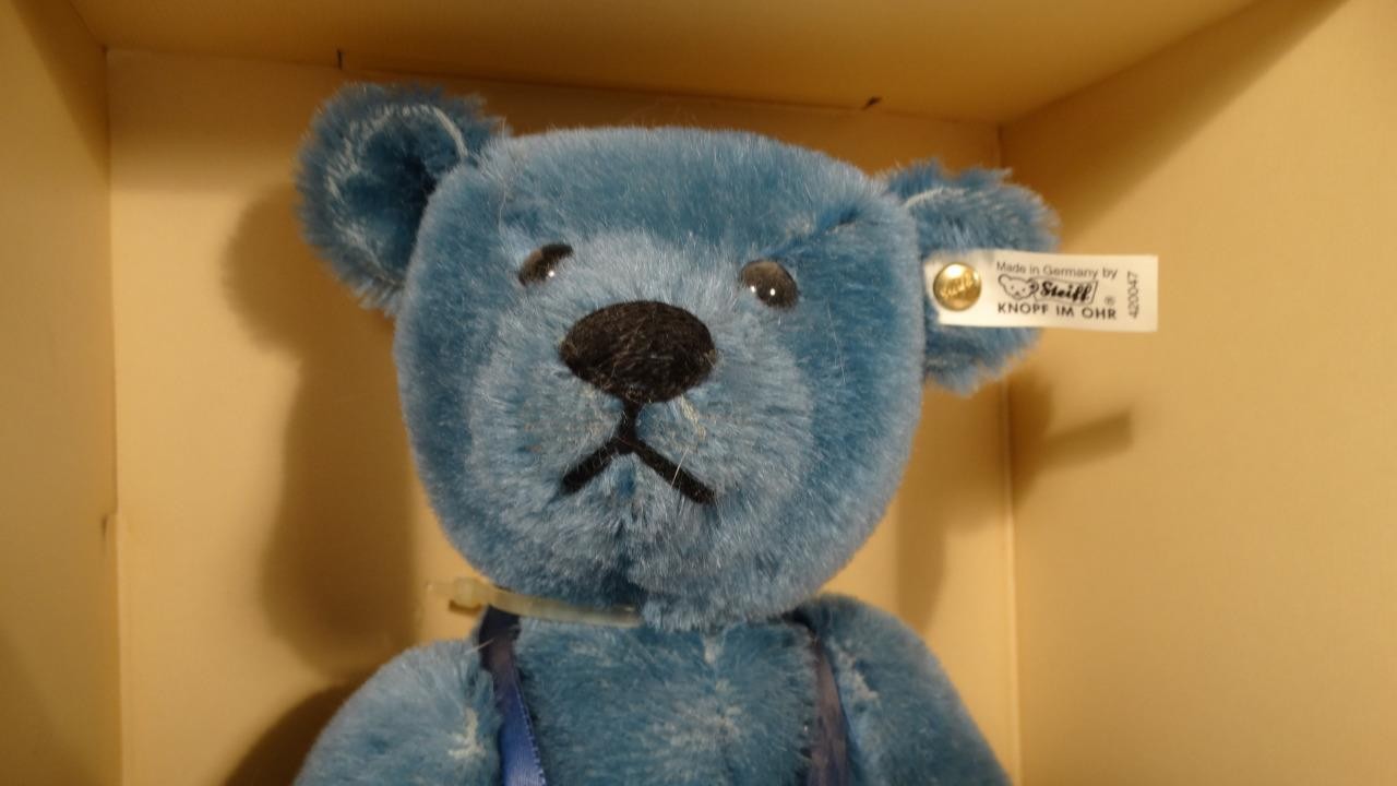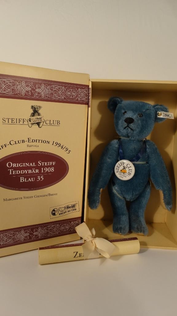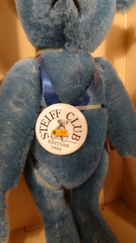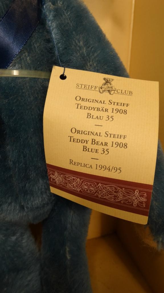 как выглядит 1994 STEIFF CLUB 35CM BLAU HAIR TEDDY BEAR 1908 REPLICA 420047 02516 COA BOX фото