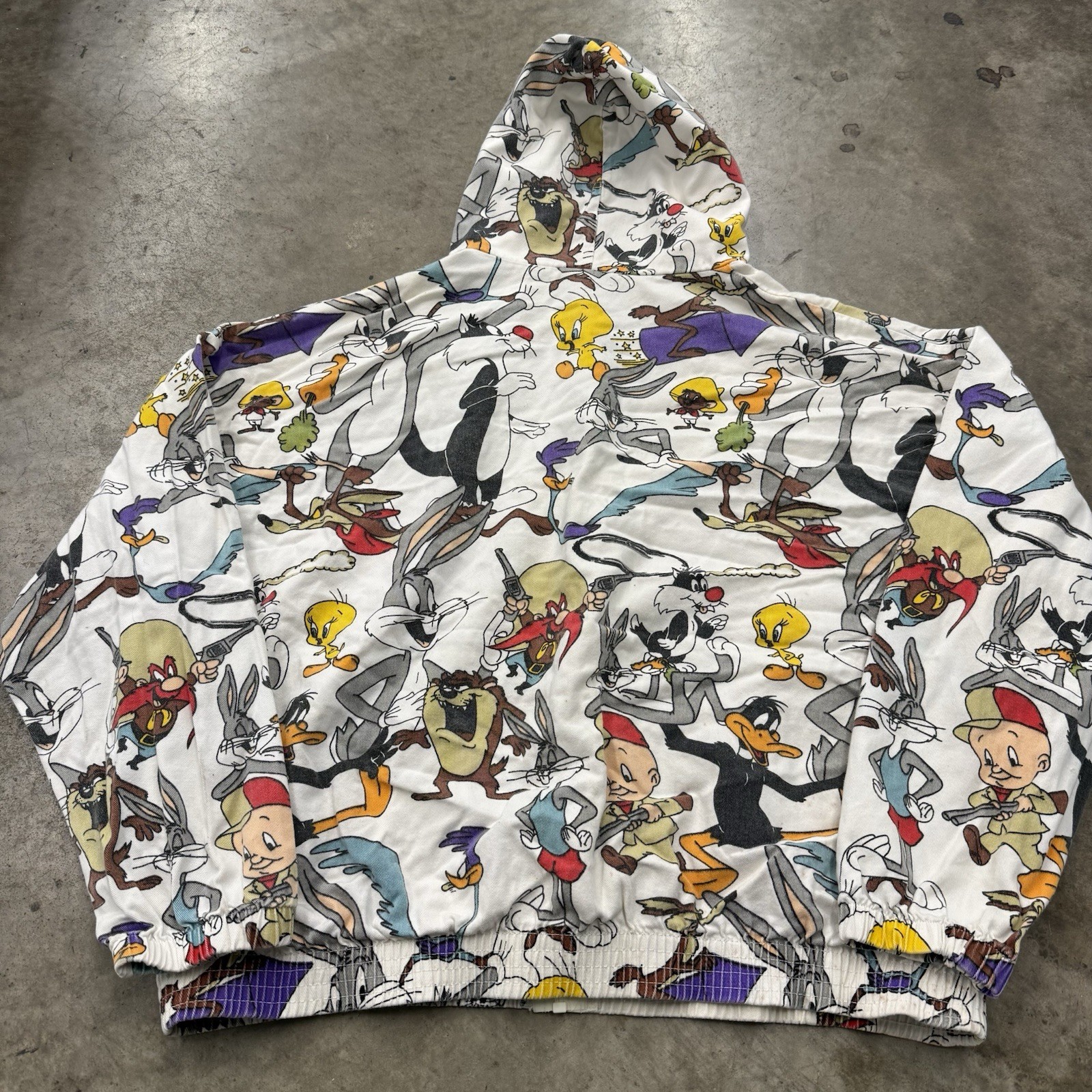 RARE 1991 Looney Tunes Bugs Bunny Full Zip Hoodie AllOverPrint Vtg Cartoon AOP L