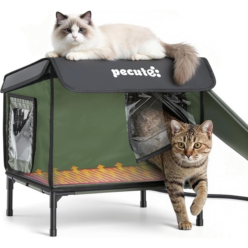 Heated Outdoor Cat House with Heating Pad Weatherproof Insulated Winter Shelter