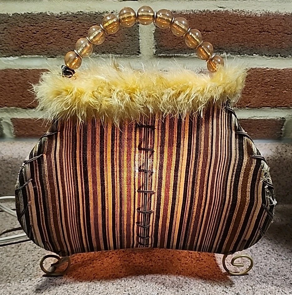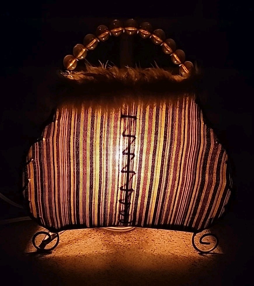 Eclectic Retro Vtg Purse Lamp Handbag Portable, Works Great Comes W Lightbulb