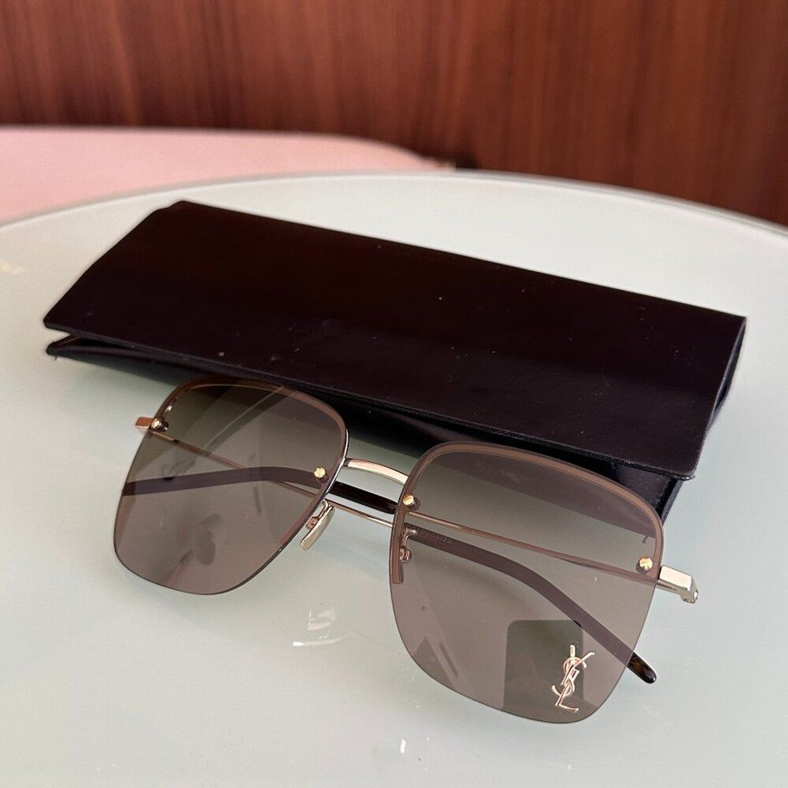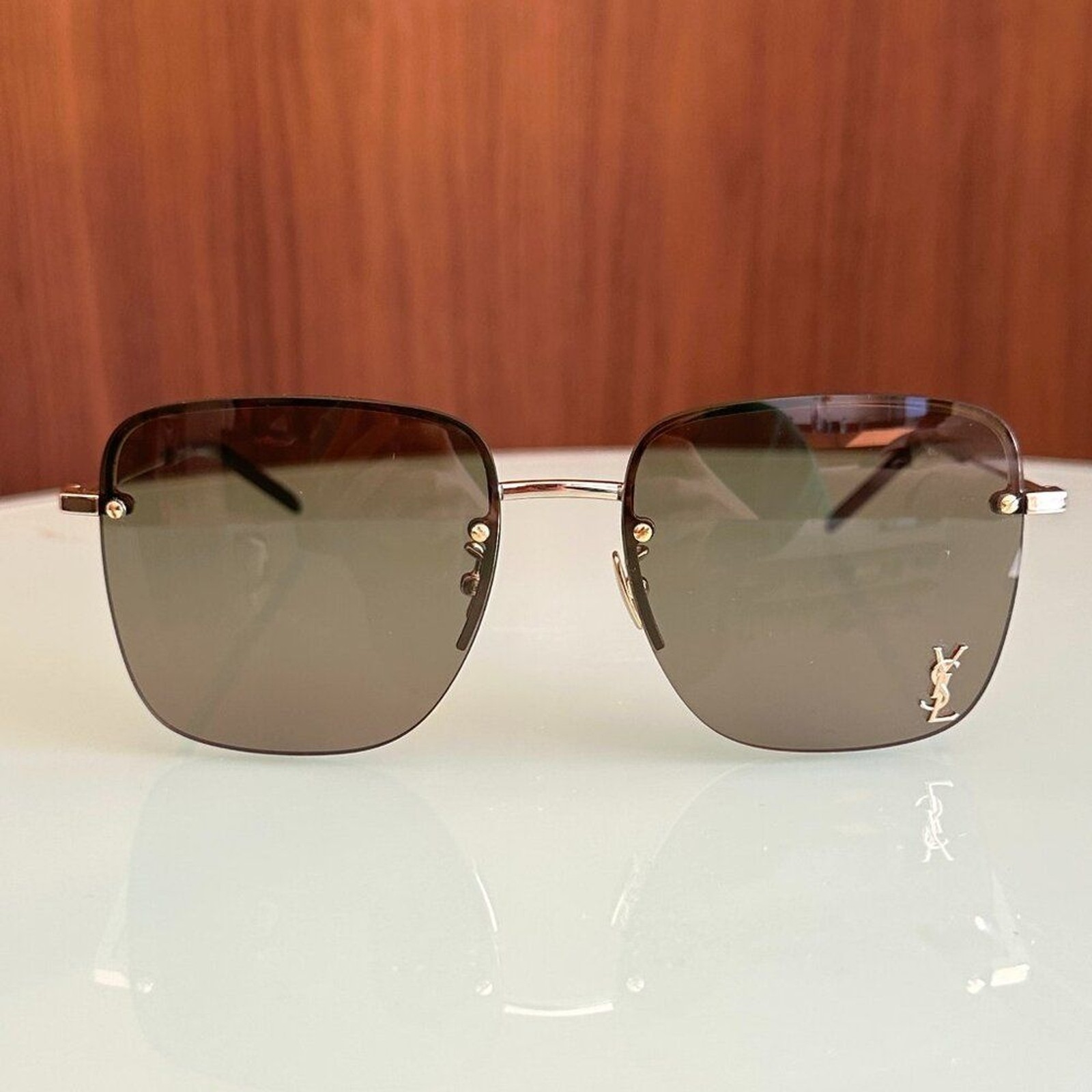 как выглядит NEW Saint Laurent SL 312 M 003 Gold Square Sunglasses Green Lens фото