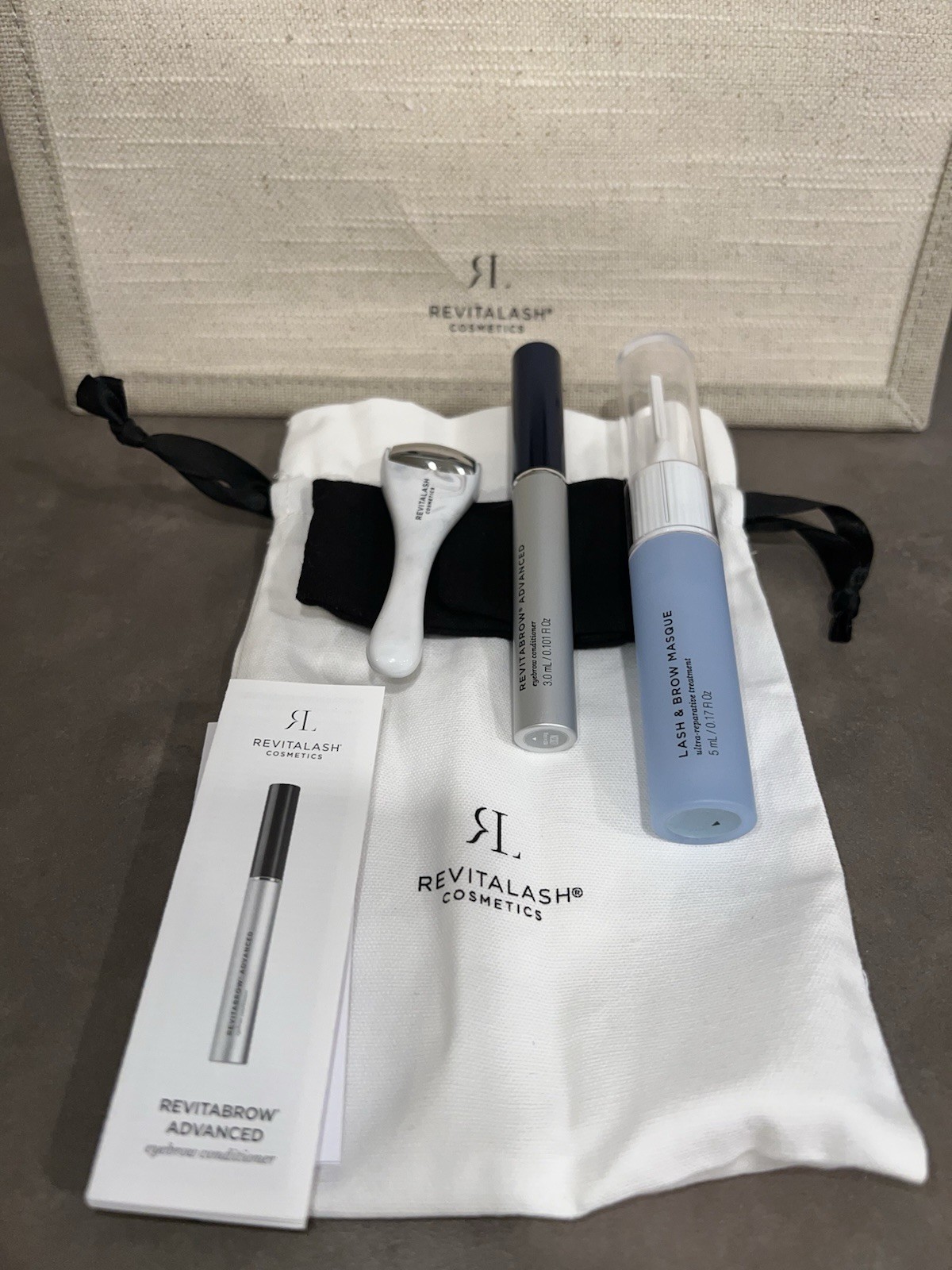 как выглядит NEW Revitabrow Gift Set Inc 3.0 Revitabrow/Lash Brow Mask/Eye Roller/Bag фото