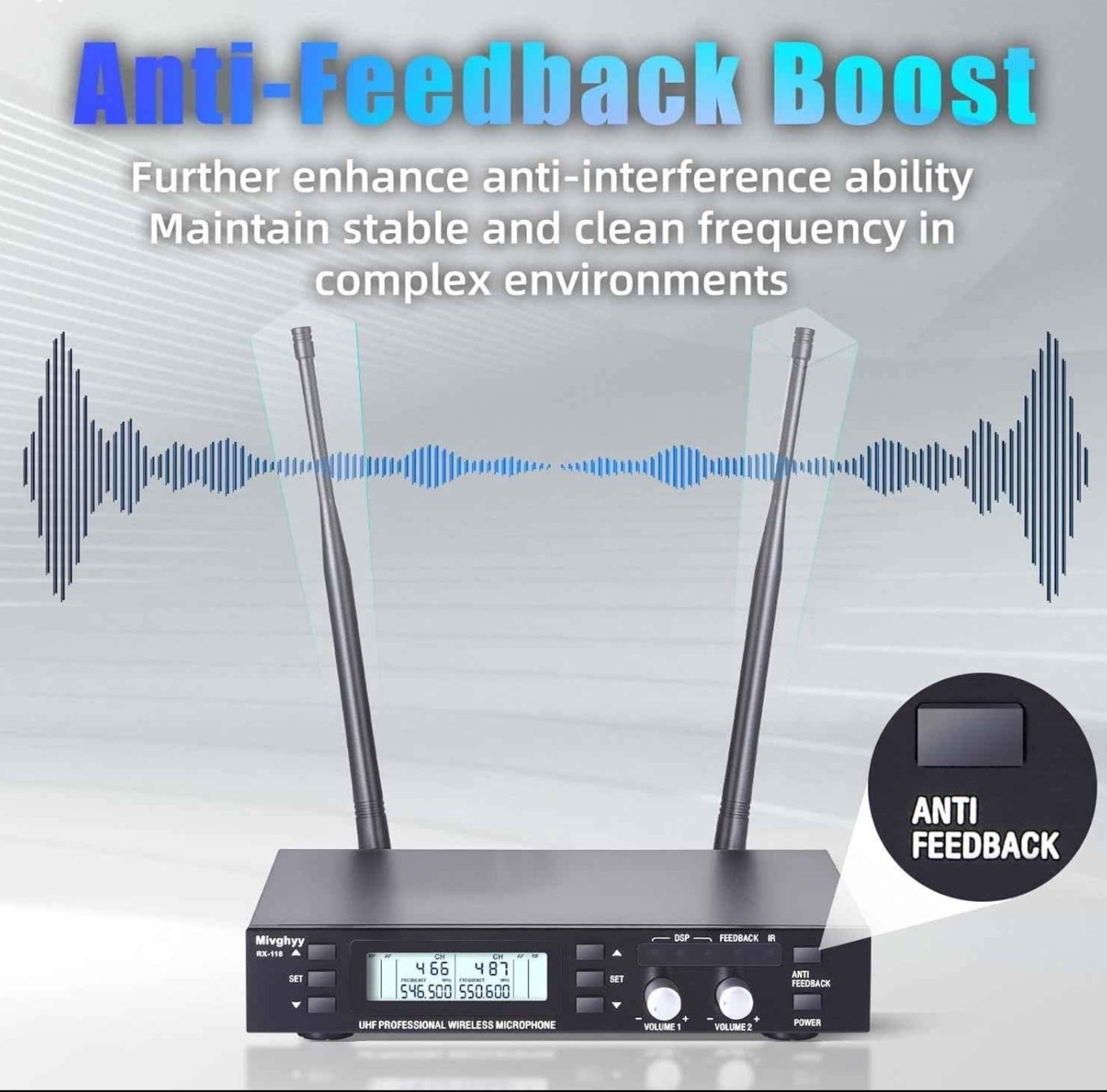 как выглядит Wireless Microphone System 2 Channels, Metal Dual Professional UHF Cordless... фото