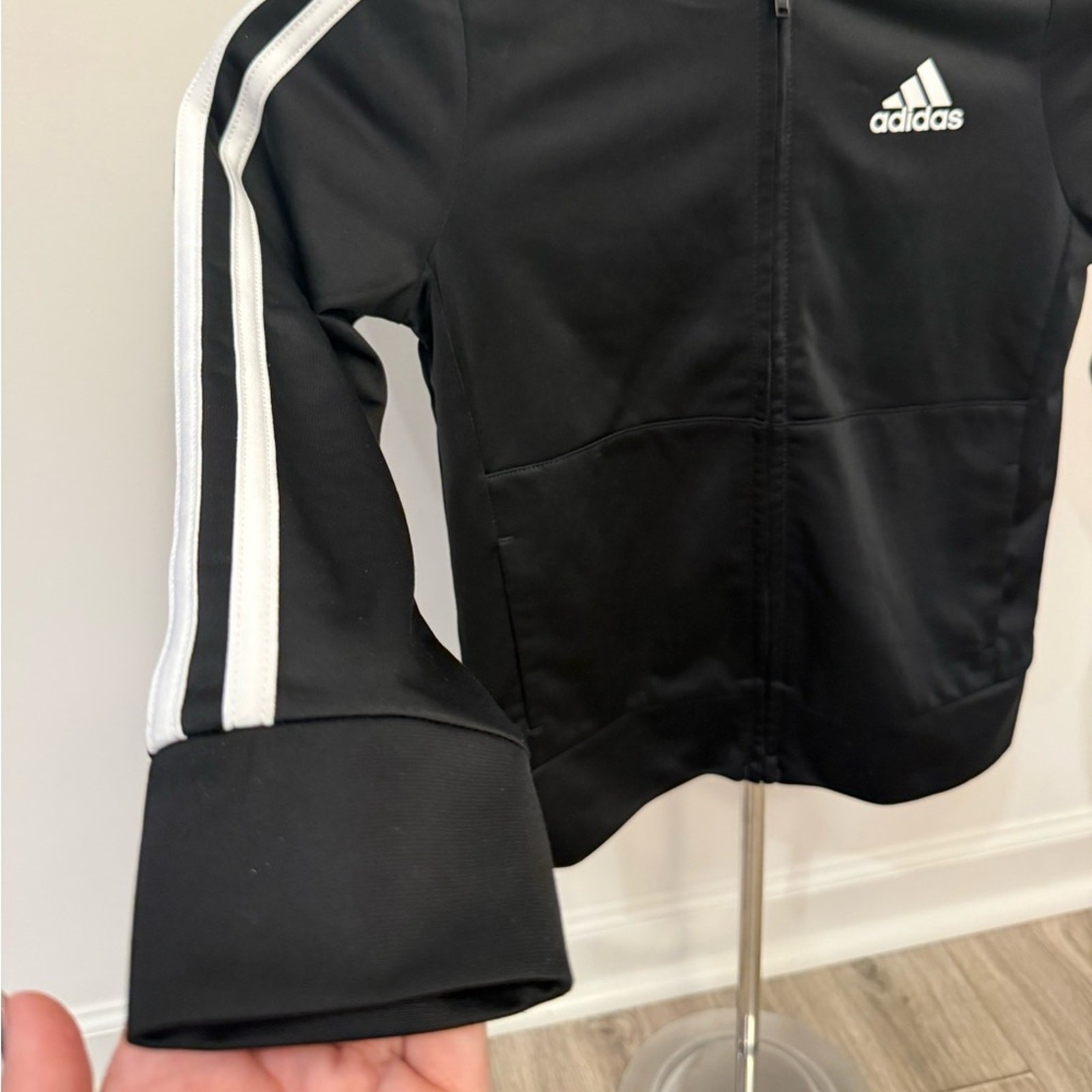 Adidas Kids 3-Stripe Zip Hoodie Jacket Black White Size 5
